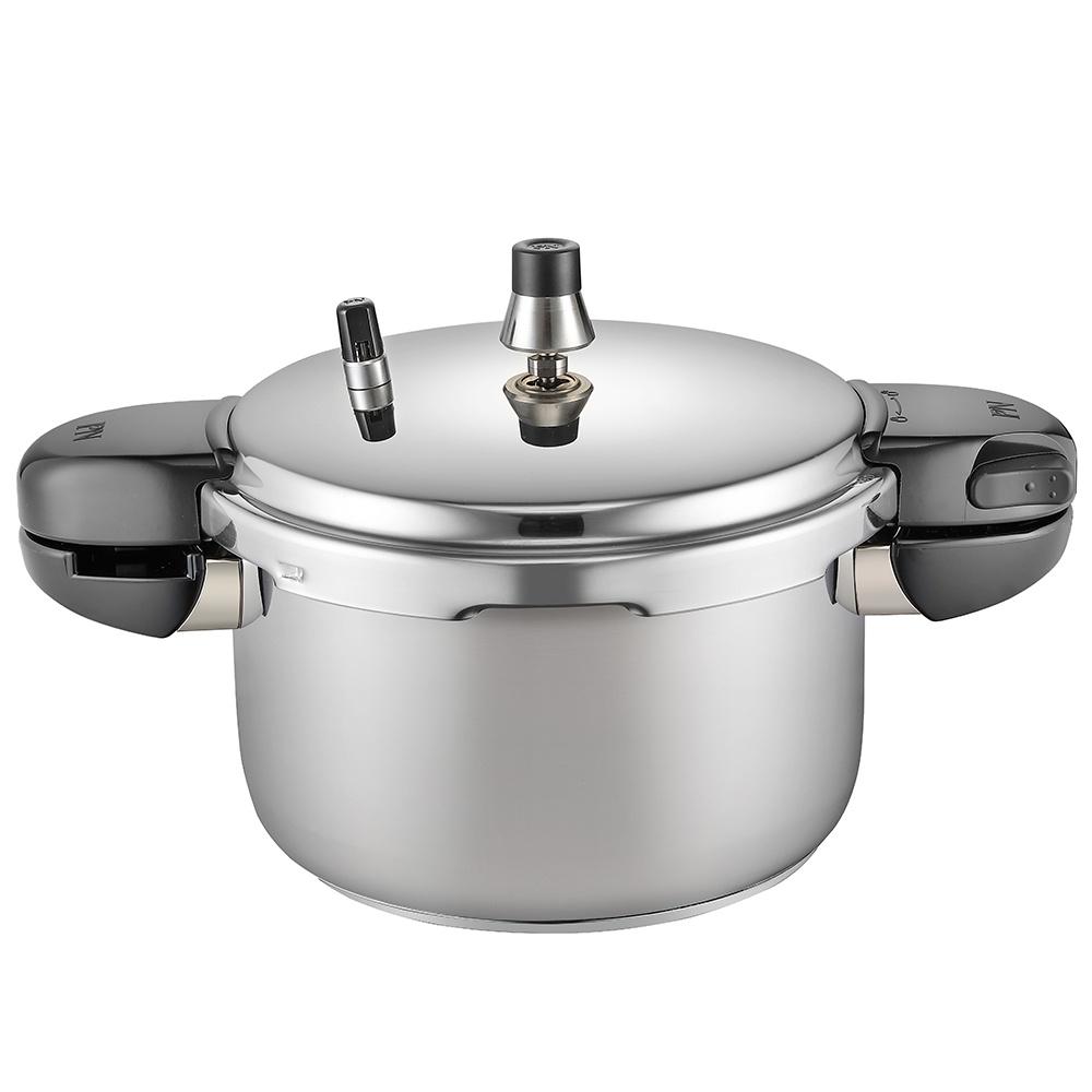 Nồi áp suất cao cấp Inox SUS304 từ tính hiệu PoongNyun HNVPC-06(IH) series Hiklad New Vienna IH đáy 3 lớp dầy 3.6mm từ nhà sản xuất thép uy tín “POSCO” giữ và gia nhiệt nhanh hơn giúp thức ăn chín mềm cực nhanh, tiết kiệm thời gian và nhiên liệu với các món hầm, luộc, kho, hấp, nấu cháo, nấu cơm, nấu cơm trộn, nấu gạo lức…., dùng trên bếp gas, bếp điện, bếp hồng ngoại và bếp từ, tay cầm ngắn và chống nóng, chức năng khóa an toàn tự động 5 chế độ, có ghim Inox vệ sinh nút tín hiệu kèm theo sản phẩm thuận tiện sử dụng cho gia đình, màu Inox tay cầm đen.