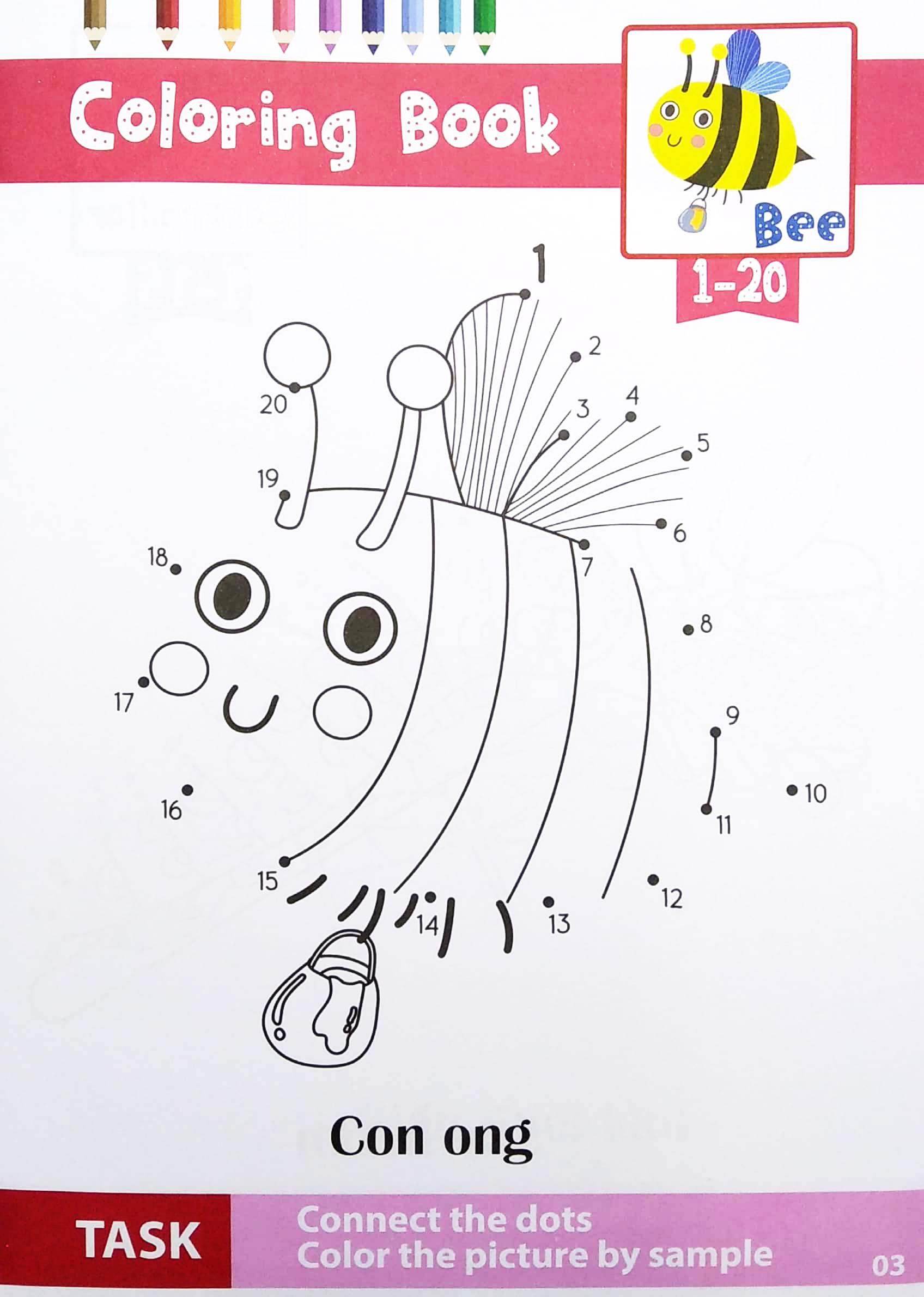 Bộ sách NỐI SỐ & TÔ MÀU không chỉ giúp cho các bé luyện vẽ, tập tô màu, luyện cách cầm bút, cách di màu, phối hợp các màu sắc,… mà còn đặc biệt hữu ích trong việc giúp các bé học tập cách đếm nhanh, làm quen dần với các con số trong Toán học. đồng thời có những tiếp xúc cơ bản với những từ tiếng Anh đơn giản về con vật, rau củ, hoa cỏ,