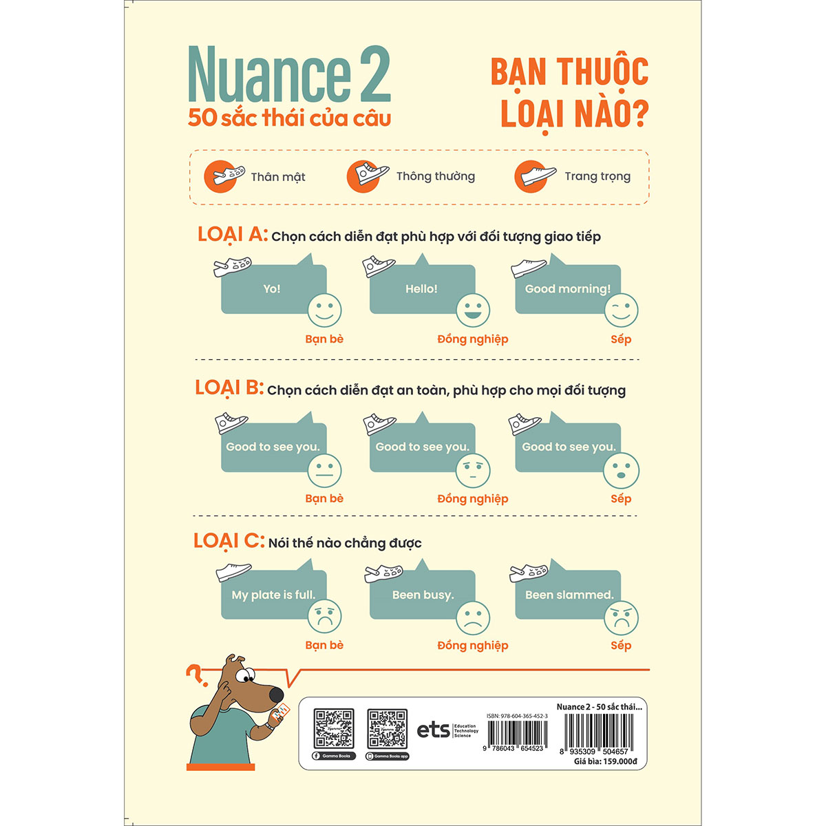 Nuance 2 – 50 sắc thái của câu là phần tiếp theo của cuốn sách bán chạy Nuance - 50 sắc thái của từ. Với cuốn sách này, bạn sẽ được tìm hiểu về sắc thái của các cách diễn đạt khác nhau trong tiếng Anh, từ đó biết cách giao tiếp linh hoạt, tự nhiên và phù hợp với từng tình huống cụ thể trong cuộc sống.