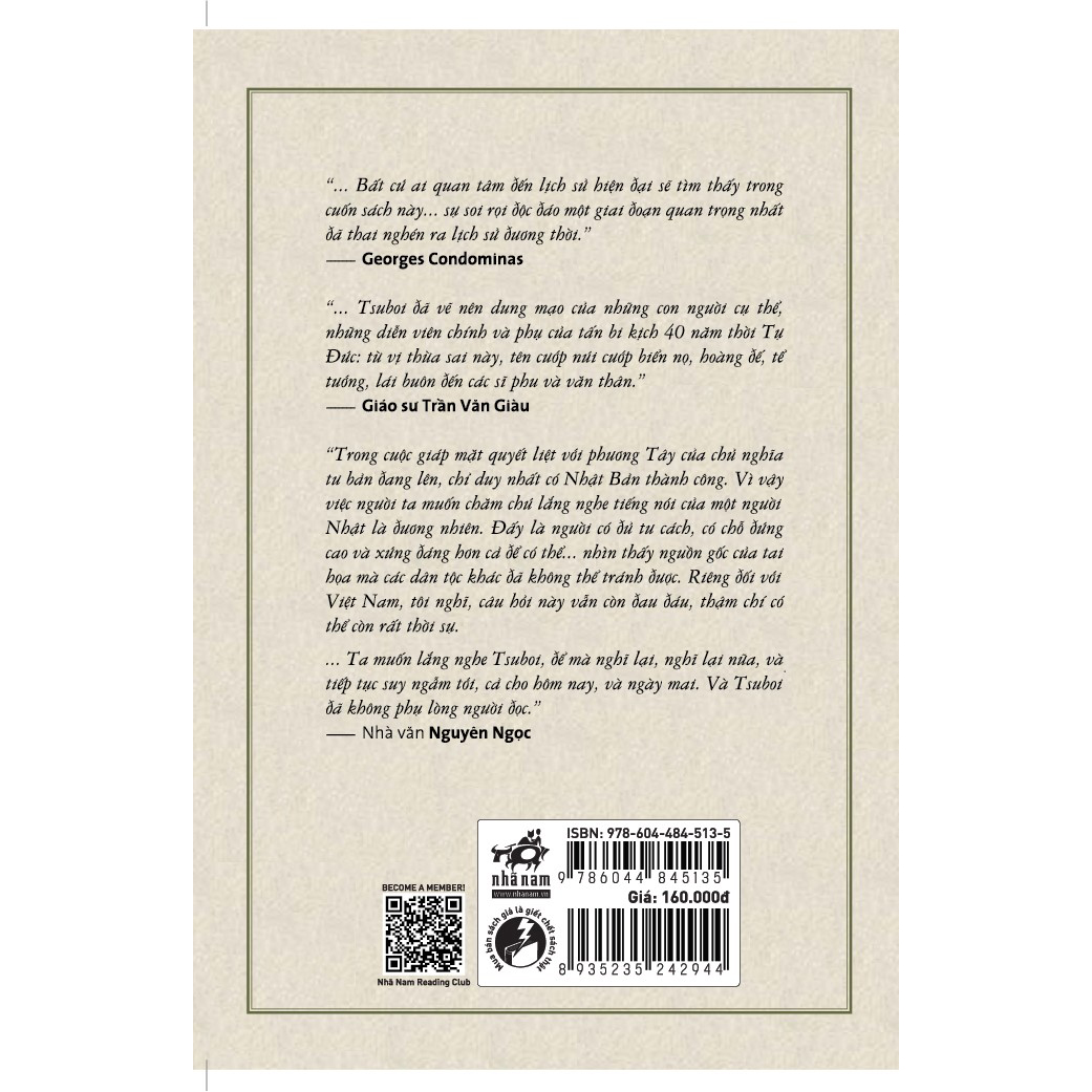 :… Bất cứ ai quan tâm đên lịch sử hiện đại sẽ tìm thấy trong cuốn sách này… sự soi rọi độc đáo một giai đoạn quan trọng nhất đã thai nghén ra lịch sử đương đại." - Georges Condominas "… Tsuboi đã vẽ nên dung mạo của những con người cụ thể, những diễn viên chính và phụ của tấn bi kịch 40 năm thời Tự Đức từ vị thừa sai này, tên cướp núi cướp biển nọ, hoàng đế, tể tướng, lái buôn đến các sĩ phu và văn thần." - Giáo sư Trần Văn Giàu "Trong cuộc giáp mặt quyết liệt với phương Tây của chủ nghĩa tư bản đang lên, chỉ duy nhất có Nhật Bản thành công. Vì vậy việc người ta muốn chăm chú lắng nghe tiếng nói của một người Nhật là đương nhiên. Đấy là người có đủ tư cách, có chỗ đứng cao và xứng đáng hơn cả để có thể... nhìn thấy nguồn gốc của tai họa mà các dân tộc khác đã không thể tránh được. Riêng đối với Việt Nam, tôi nghĩ, câu hỏi này vẫn còn đau đáu, thậm chí có thể còn rất thời sự. ...Ta muốn lắng nghe Tsuboi, để mà nghĩ lại, nghĩ lại nữa, và tiếp tục suy ngẫm tới, cả cho hôm nay và ngày mai. Và Tsuboi đã không phụ lòng người đọc," - Nhà văn Nguyên Ngọc