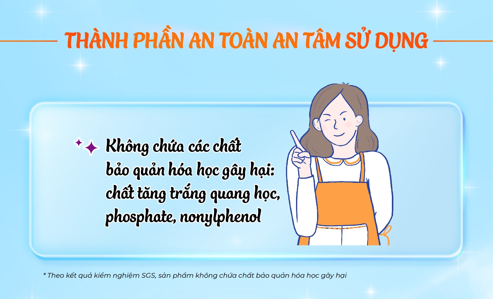 - Không chứa chất bảo quản gây hại, thành phần an toàn Cảnh báo: