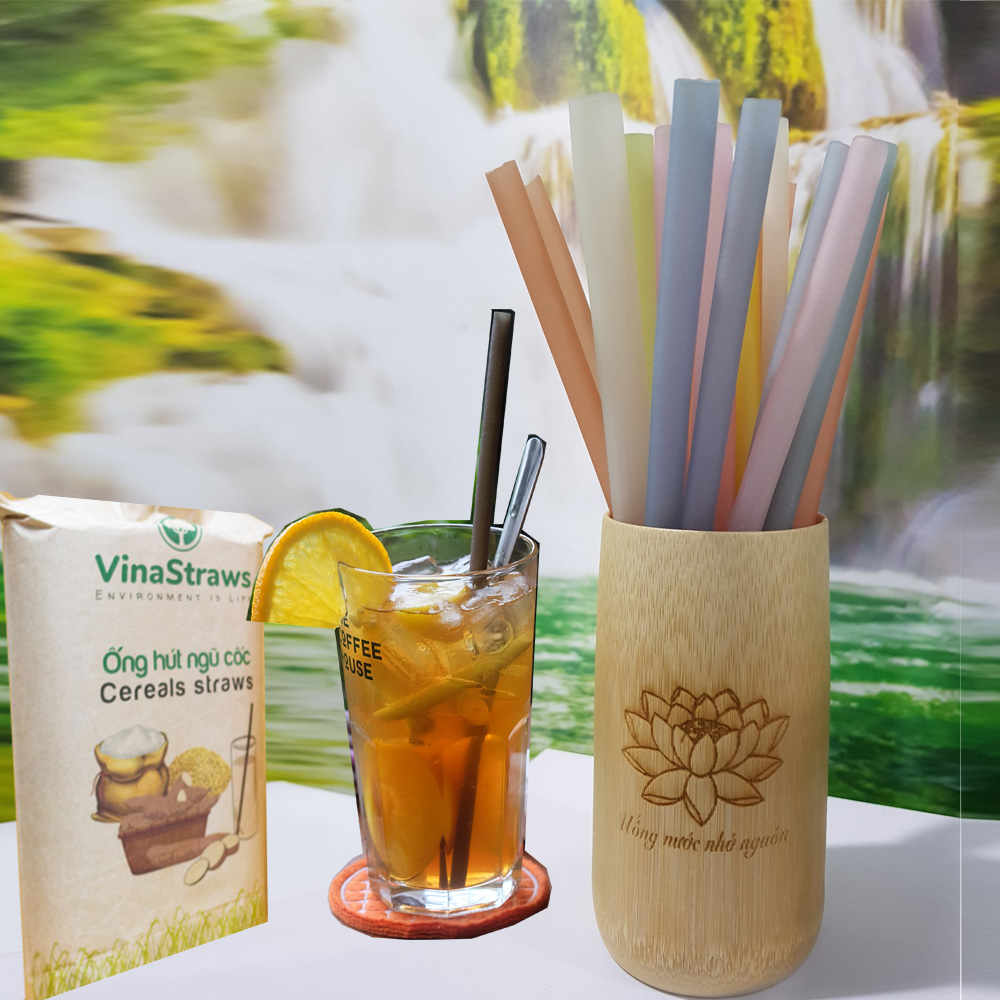 Ống hút ống hút gạo ống hút ngũ cốc có màng bọc Ống hút được dùng thay thế ống hút nhựa Được sản xuất từ tinh bột gạo, bột sắn, màu sắc từ rau củ