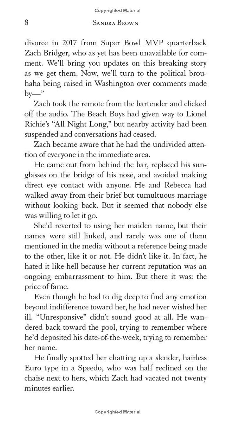 Former Super Bowl MVP quarterback Zach Bridger hasn’t seen his ex-wife, Rebecca Pratt, for some time—not since their volatile marriage imploded—so he’s shocked to receive a life-altering call about her. Rebecca has been placed on life support after a violent assault, and he—despite their divorce—has medical power-of-attorney. Zach is asked to make an impossible choice: keep her on life support or take her off of it. Buckling under the weight of the responsibility and the glare of public scrutiny, Zach ultimately walks away, letting Rebecca's parents have the final say.