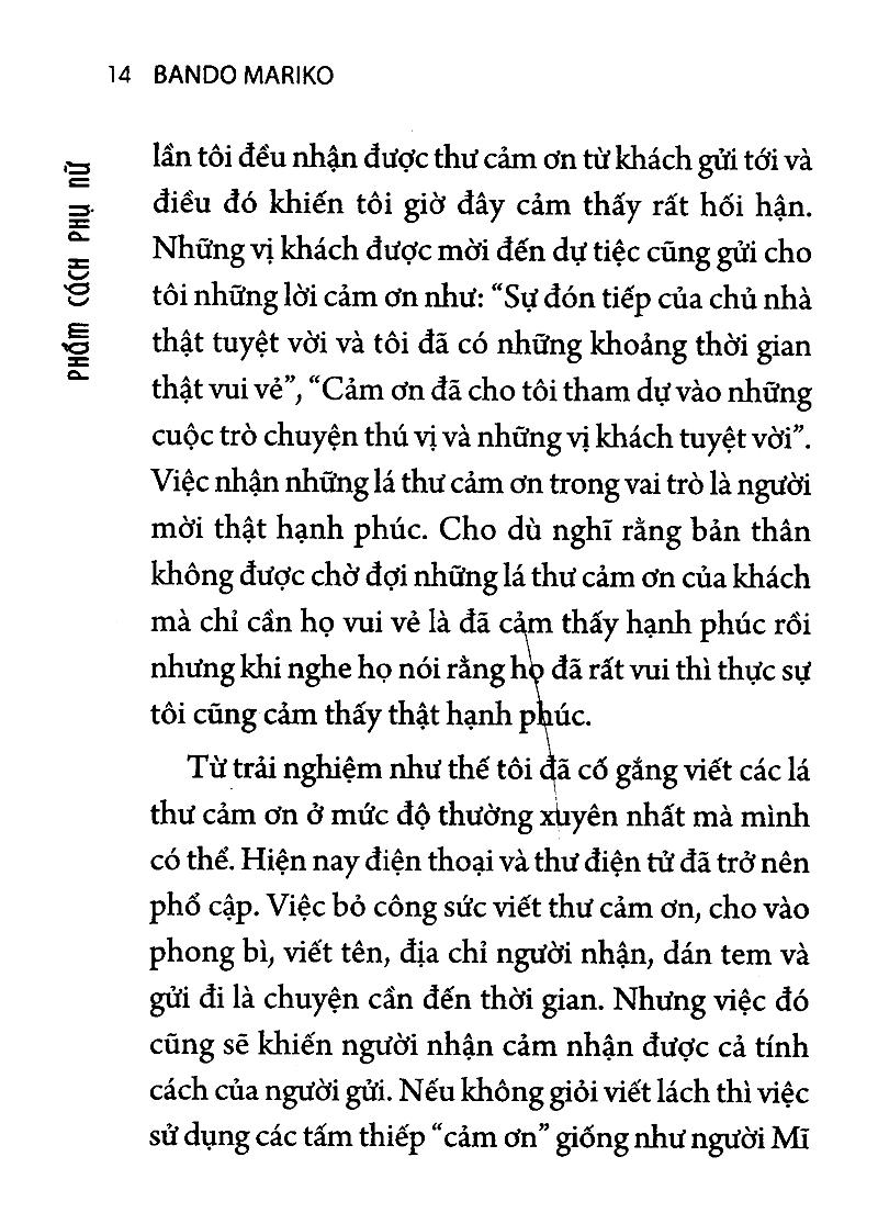 Trong phần mở đầu cuốn Phẩm cách Phụ nữ bà đã đưa ra 3 lý do khiến bà “cả gan” viết cuốn sách về Phẩm cách phụ nữ như sau: