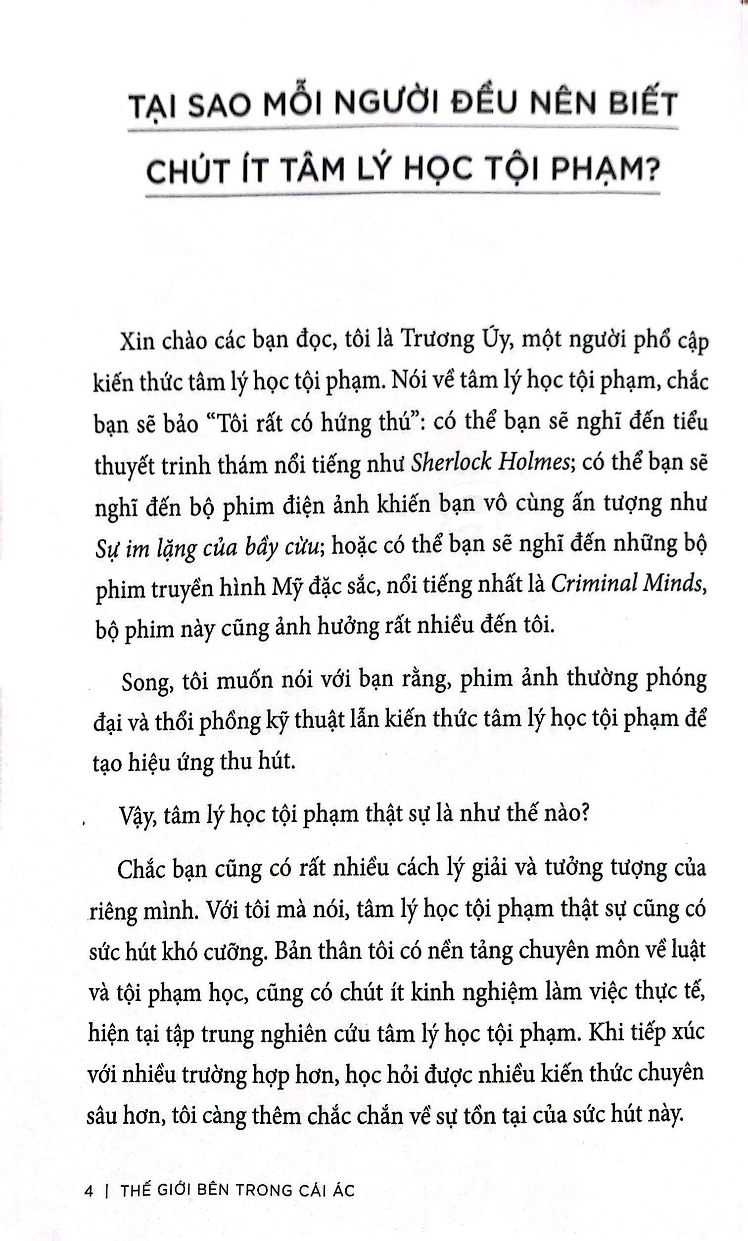 Với sự phân tích chi tiết và chuyên sâu về tâm lý học tội phạm của một cố vấn tâm lý cấp quốc gia, cuốn sách "Thế giới bên trong cái ác" sẽ là một tài liệu hữu ích cho những ai quan tâm đến tội phạm và muốn hiểu sâu hơn về tâm lý của những người phạm tội.