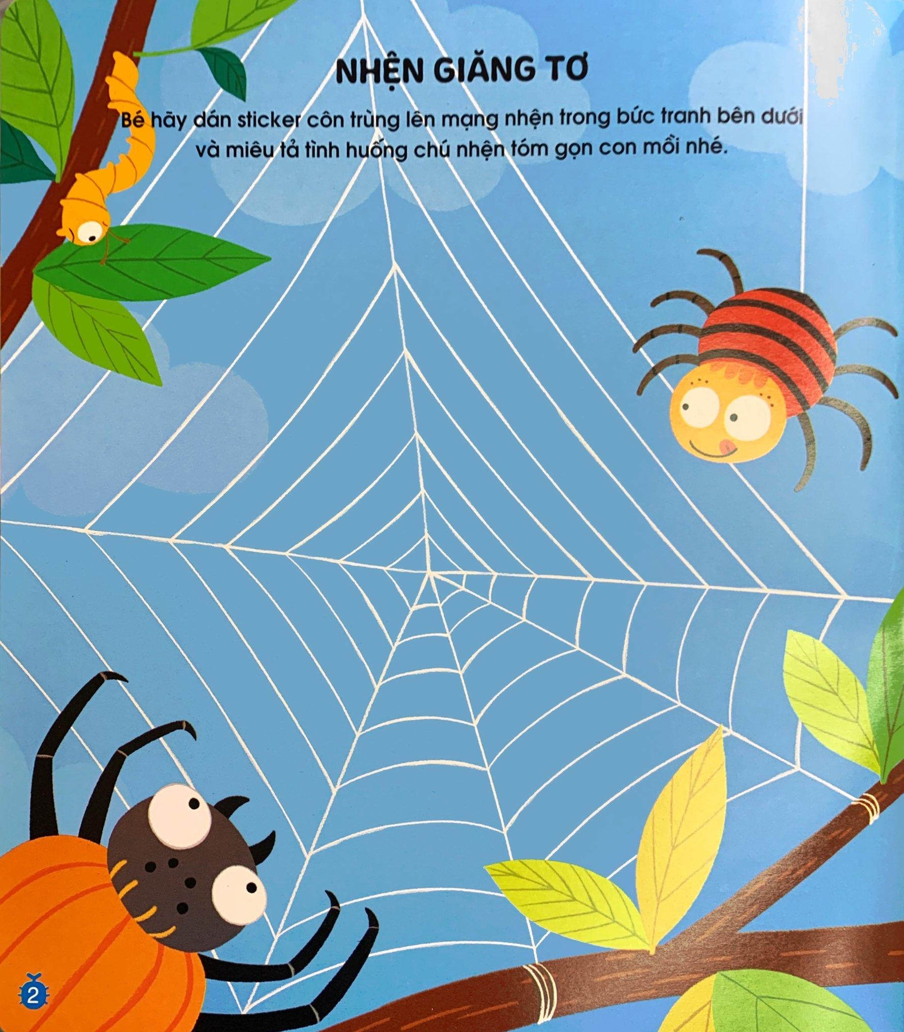 Thông qua trò chơi tô - dán và nối hình, bé sẽ được làm quen với thế giới các loài côn trùng nhỏ bé, đáng yêu và vô cùng đa dạng cùng với tập tính, đặc điểm của từng loài như kiến kiếm ăn theo đàn, nhện giăng tơ bắt mồi, ong chăm chỉ làm mật, ốc sên màu sặc sỡ, bọ rùa cánh cứng xinh xắn, sâu uốn dẻo, ve sầu yêu ca hát…