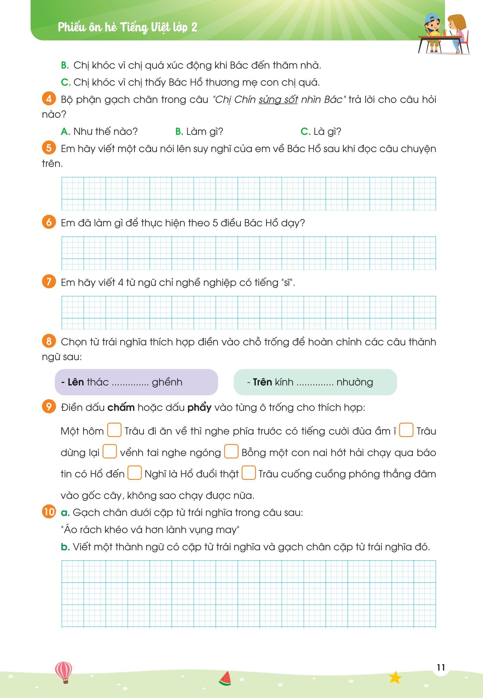 Với nội dung được biên soạn kỹ lưỡng và phù hợp với chương trình của Bộ GD&ĐT, đây là người bạn đồng hành tin cậy của học sinh lớp 2 trong việc chuẩn bị kiến thức Tiếng Việt một cách toàn diện.