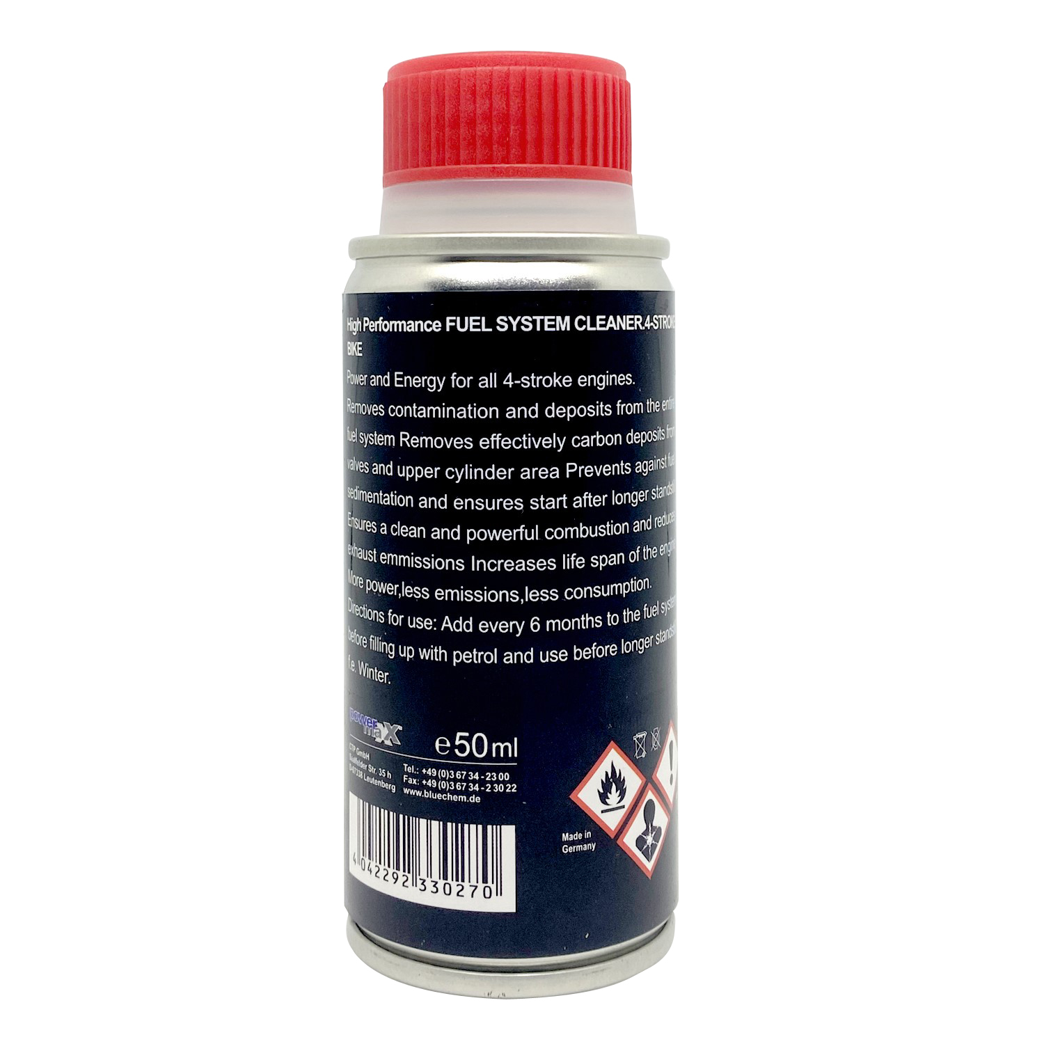 Giới thiệu Phụ gia xăng cho xe máy Bluechem 33027 Phụ gia xăng cho xe máy Bluechem 33027 giúp làm sạch cặn bẩn trong bình và ống dẫn xăng, kim phun xăng, muội than và tạp chất trong buồng đốt. giúp phục hồi động cơ, tiết kiệm nhiên liệu và tăng tốc dễ dàng. Phụ gia xăng cho xe máy Bluechem 33027 được cấp chứng nhận TUV về an toàn và hiệu quả và Công nghệ duy nhất trên thế giới hiện nay kết hợp làm sạch và bảo vệ một cách toàn diện nhất. Thông tin chi tiết