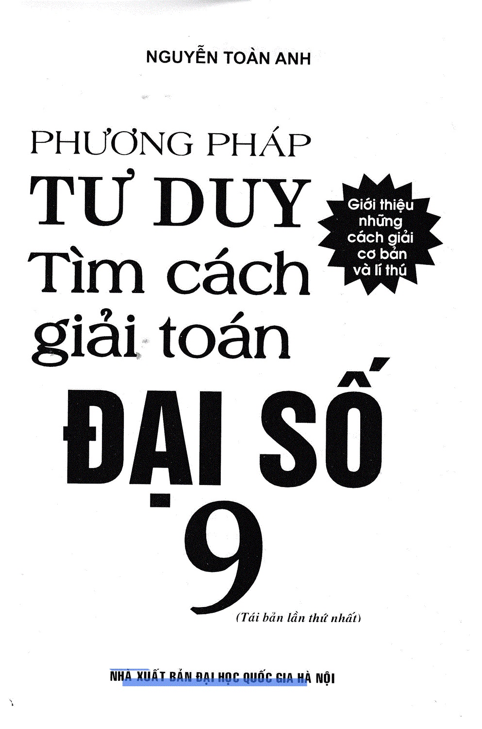 Phương Pháp Tư Duy Tìm Cách Giải Toán Đại Số 9, sách trình bày những phương pháp tư duy sáng tạo giải bài tập toán đại số lớp 9, của tác giả Nguyễn Toàn Anh. Bộ sách "phương pháp tư duy tìm cách toán 9" gồm 2 quyển, địa số và Phương Pháp Tư Duy Tìm Cách Giải Toán Hình Học 9
