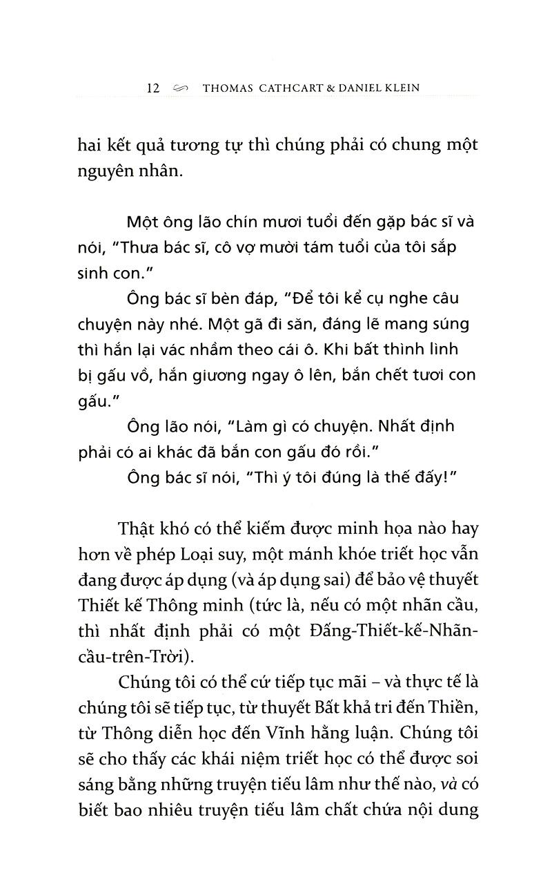 Sáng tạo thêm bên cạnh TRIẾT HỌC một khái niệm mới: TIẾU HỌC, Thomas Cathcart và Daniel Klein đã mở rộng cánh cửa để ánh sáng của rừng cười tràn vào ngôi đền triết học. PLATO VÀ CON THÚ MỎ VỊT BƯỚC VÀO QUÁN BAR... dẫn dắt người đọc vào cuộc du hành vui vẻ và hài hước, qua truyện cười để hiểu lịch sử triết học cổ kim, đưa ra những câu trả lời đơn giản đến bất ngờ cho những ai muốn đi sâu vào bản chất Các Câu Hỏi Lớn mà không bị chìm nghỉm trong lý luận hàn lâm.