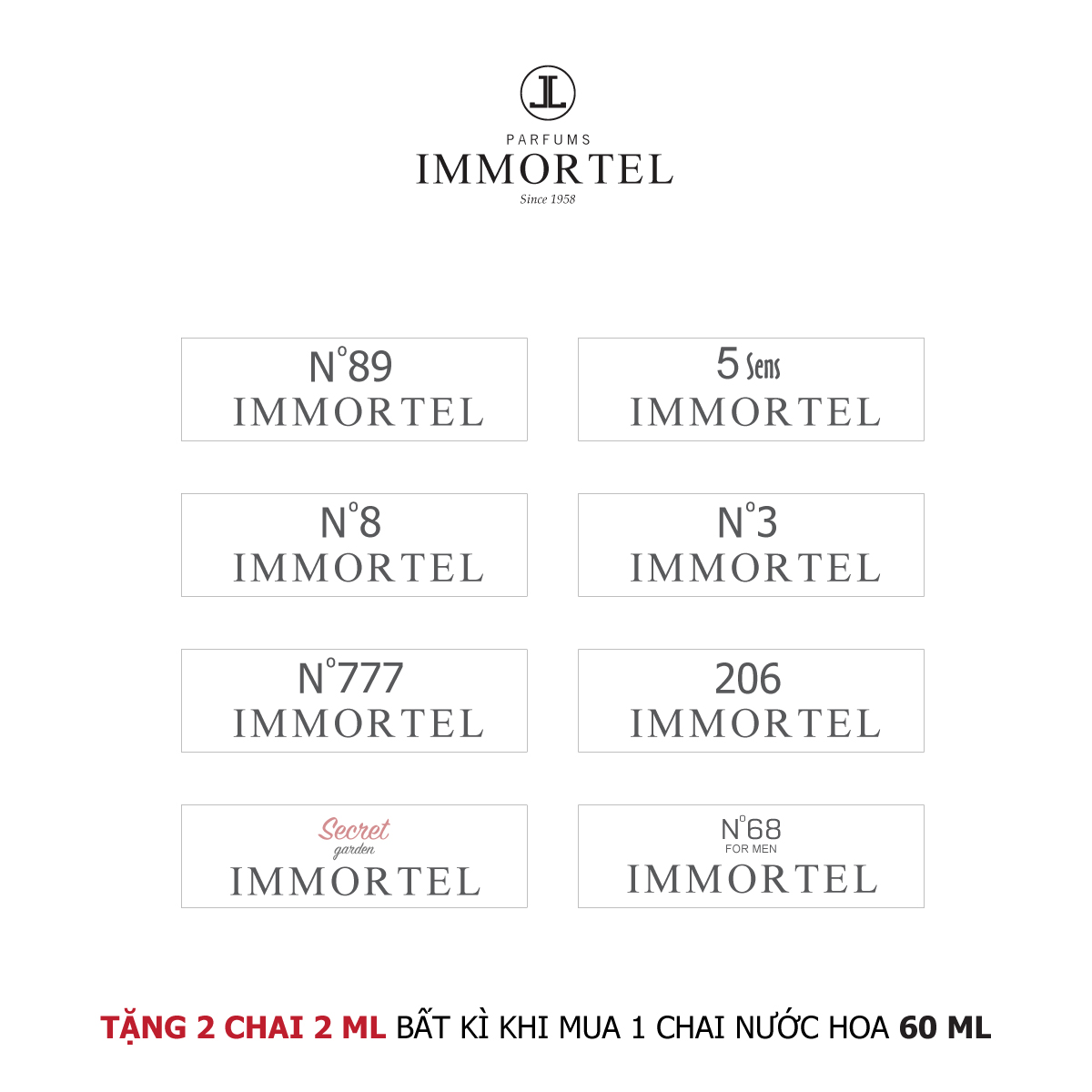 TẶNG NGAY 2 CHAI NƯỚC HOA IMMORTEL PARIS 2ML BẤT KÌ KHI MUA 1 CHAI NƯỚC HOA IMMORTEL 60ML.