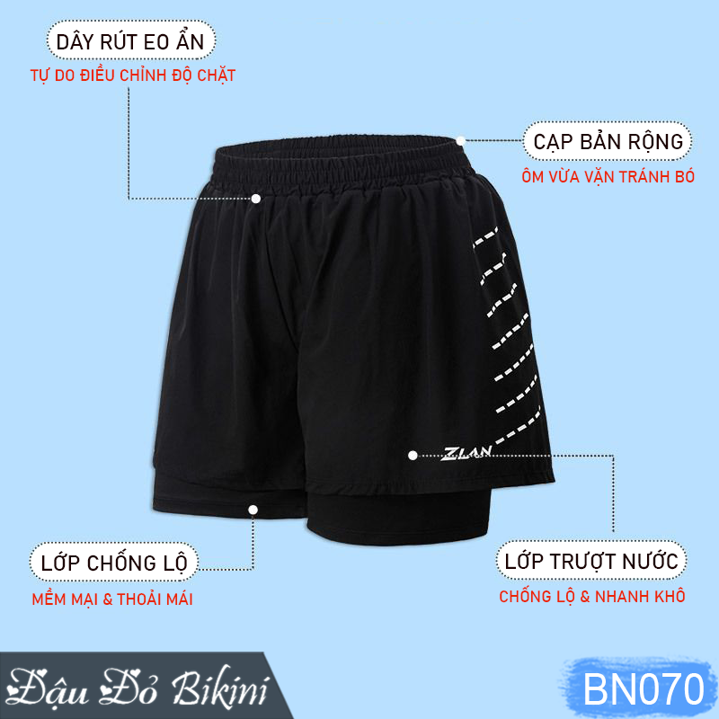 Quần bơi 2 lớp big size từ Đậu Đỏ Bikini (mã sản phẩm: BN070) không chỉ mang đến sự thoải mái mà còn giúp các bạn nam béo mập tự tin bơi lội khi ở