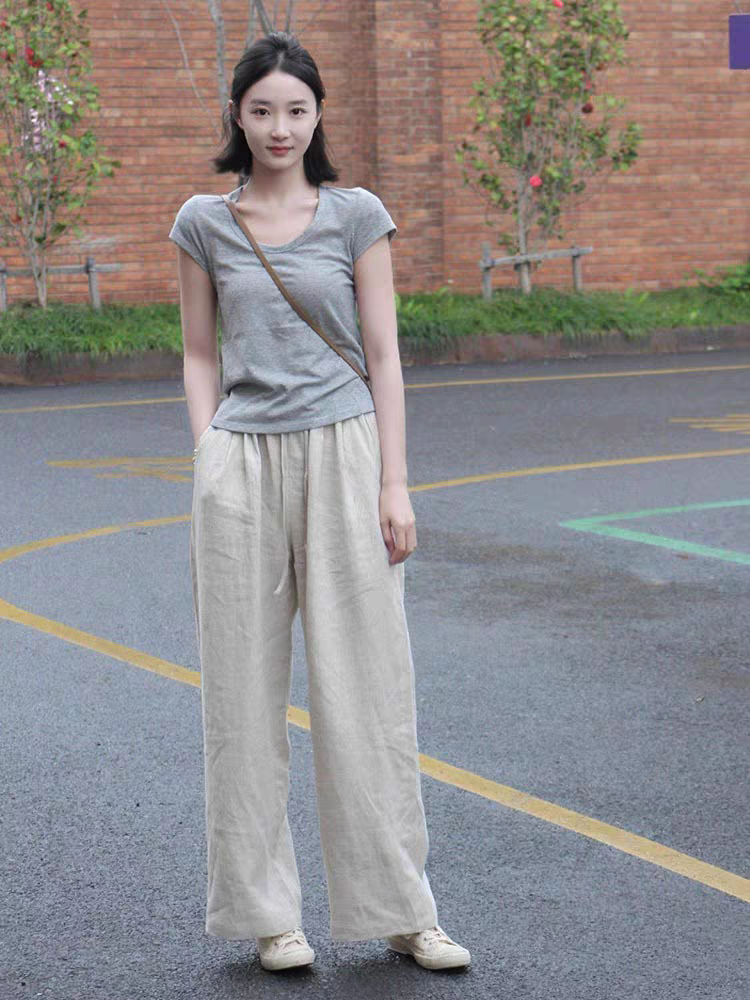 Quần nữ chất đũi mặc siêu mát, dáng suông rộng lưng chun sau Qt38