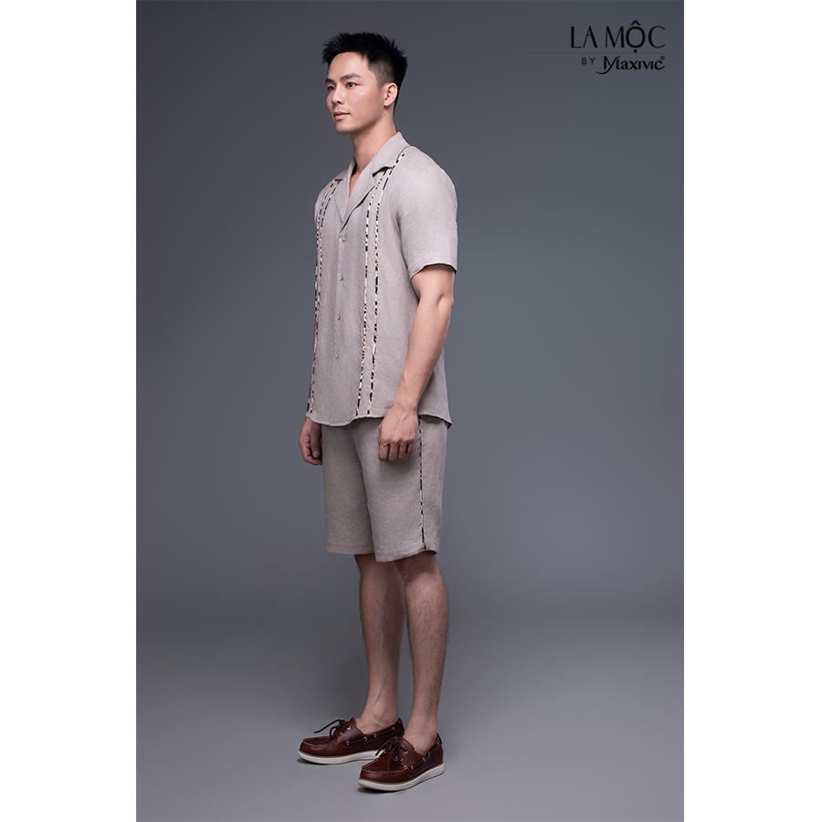 ✨Quần nam linen kem sẫm ngắn viền sườn
