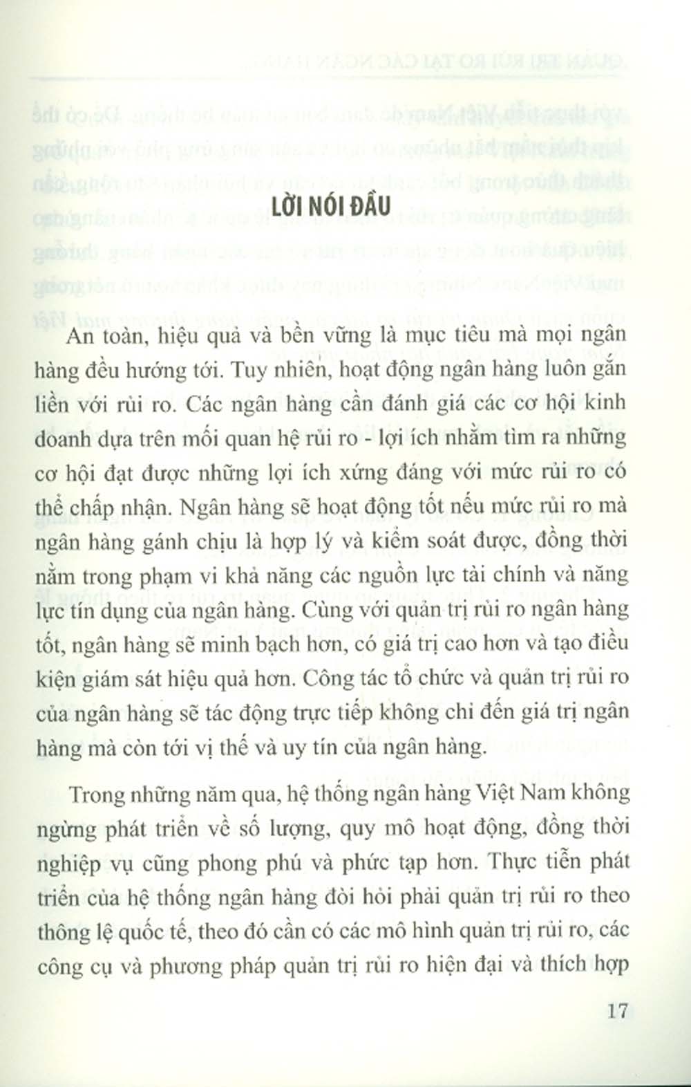 Trong những năm qua, hệ thống ngân hàng Việt Nam không ngừng phát triển về số lượng, quy mô hoạt động, đồng thời nghiệp vụ cũng phong phú và phức tạp hơn. Thực tiễn phát triển của hệ thống ngân hàng đòi hỏi phải quản trị rủi ro theo thông lệ quốc tế, theo đó cần có các mô hình quản trị rủi ro, các công cụ và phương pháp quản trị rủi ro hiện đại và thích hợp với thực tiễn Việt Nam để đảm bảo an toàn hệ thống. Để có thể kịp thời nắm bắt những cơ hội và sẵn sàng ứng phó với những thách thức trong bối cảnh tái cơ cấu và hội nhập sâu rộng, cần tăng cường quản trị rủi ro theo thông lệ quốc tế nhằm nâng cao hiệu quả hoạt động quản trị rủi ro tại các ngân hàng thương mại Việt Nam. Những nội dung này được khắc họa rõ nét trong cuốn sách Quản trị rủi ro tại các ngân hàng thương mại Việt Nam trong bối cảnh hội nhập quốc tế.