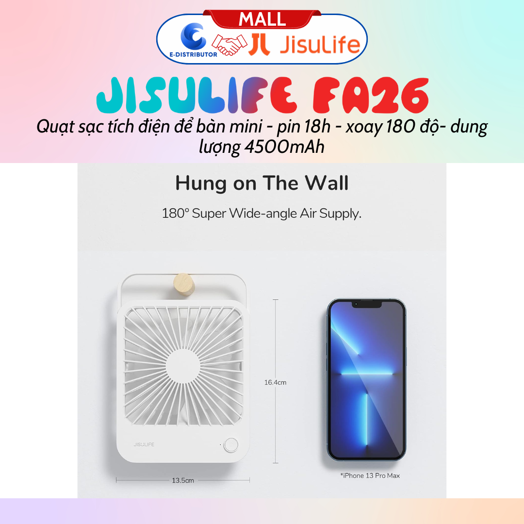 Quạt tích điện mini để bàn Jisulife FA26 - pin 4500mah pin 18 giờ, xoay 180 độ - Hàng chính hãng - Thương hiệu: JisuLife - Sản xuất: Trung Quốc - Bảo hành: 12 tháng