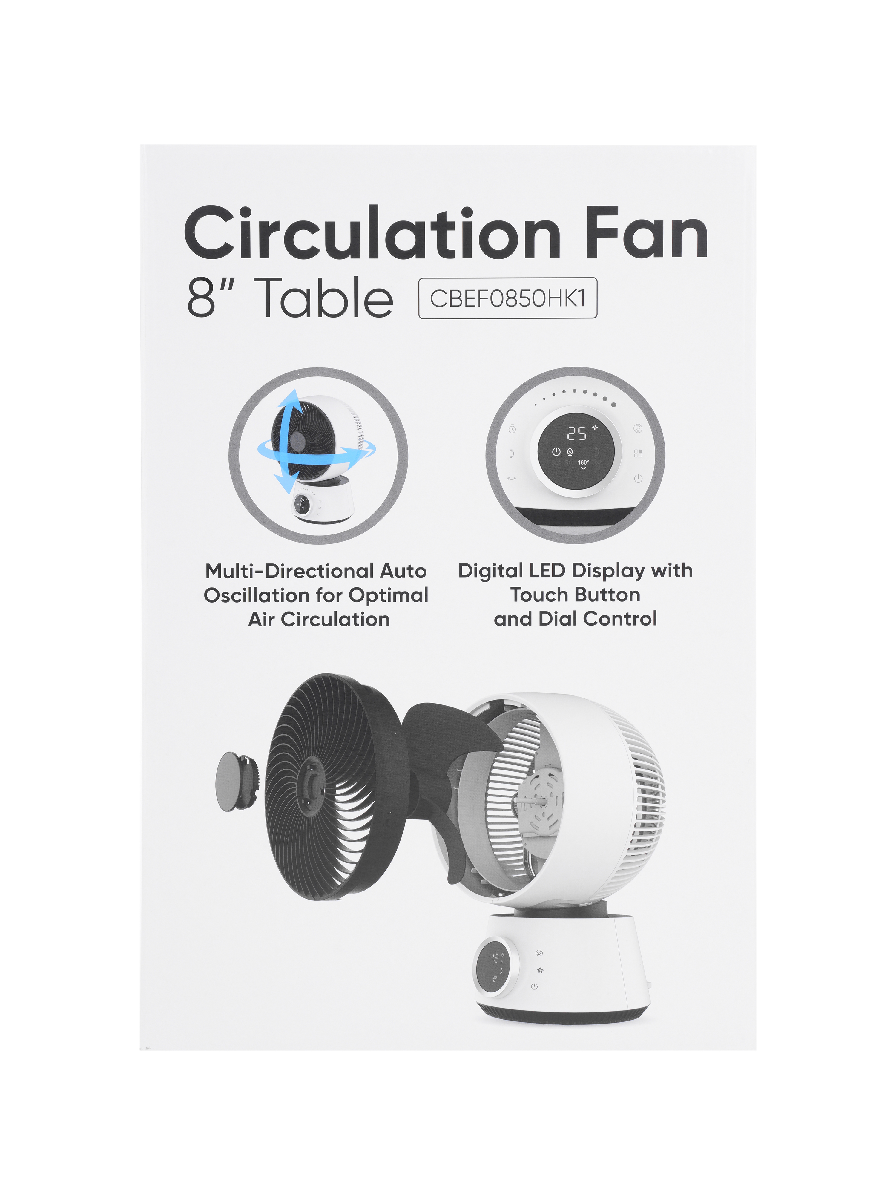 Quạt tuần hoàn không khí để bàn 8", màu trắng + đen Chức năng