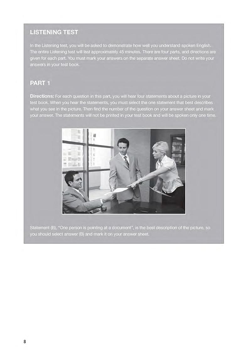 It is our strong belief that this preparation book will assist you in developing the most effective strategies for you to conquer the TOEIC test and achieve your target score.