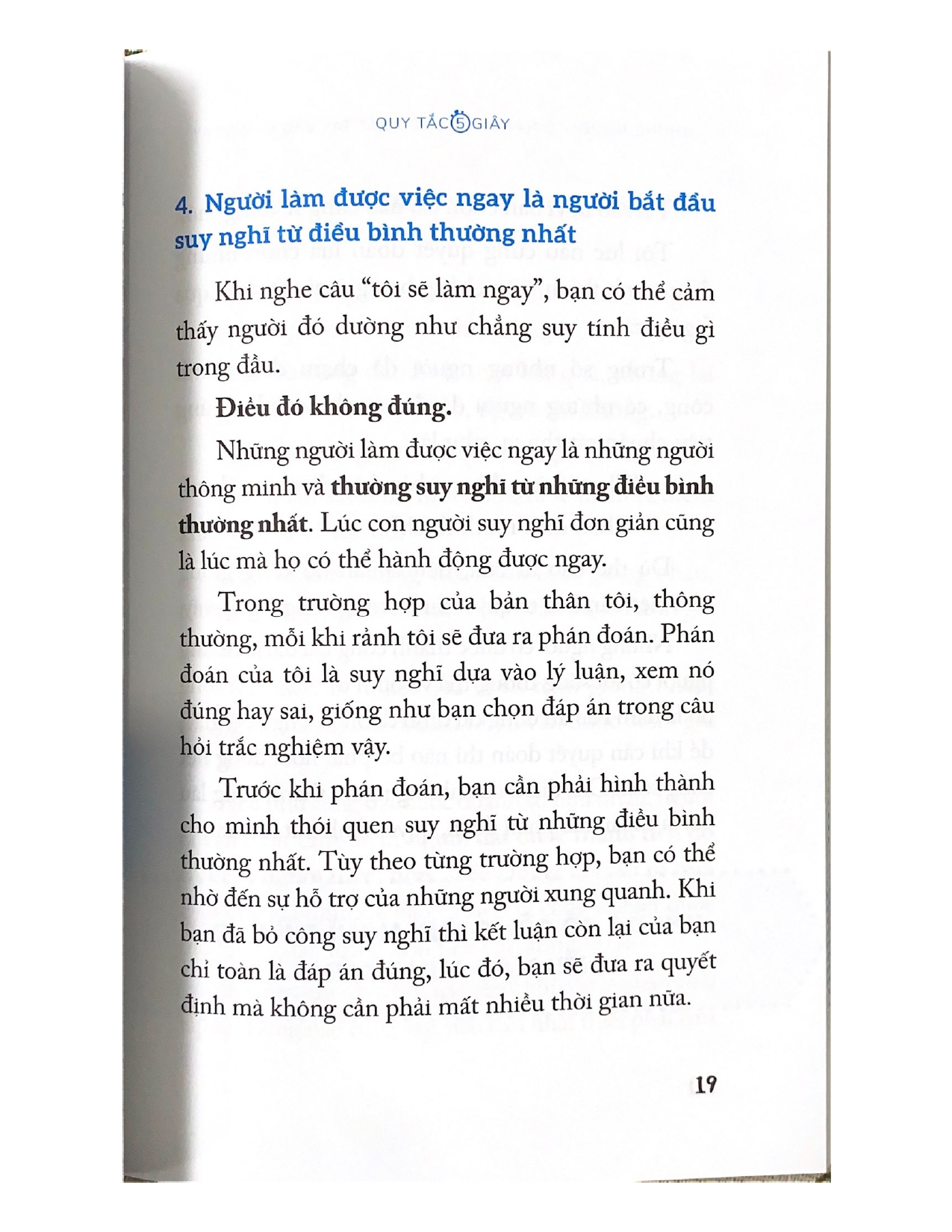 Quy tắc 5 giây là cuốn bí kíp dành cho những ai thiếu quyết đoán, chưa có đủ dũng khí và sự tự tin để hành động. Với 50 quy tắc ngắn gọn và dễ hiểu, cuốn sách này sẽ giúp bạn điều chỉnh lại định hướng của mình trong công việc, đời sống, và các mối quan hệ để hướng tới kết quả tốt nhất.