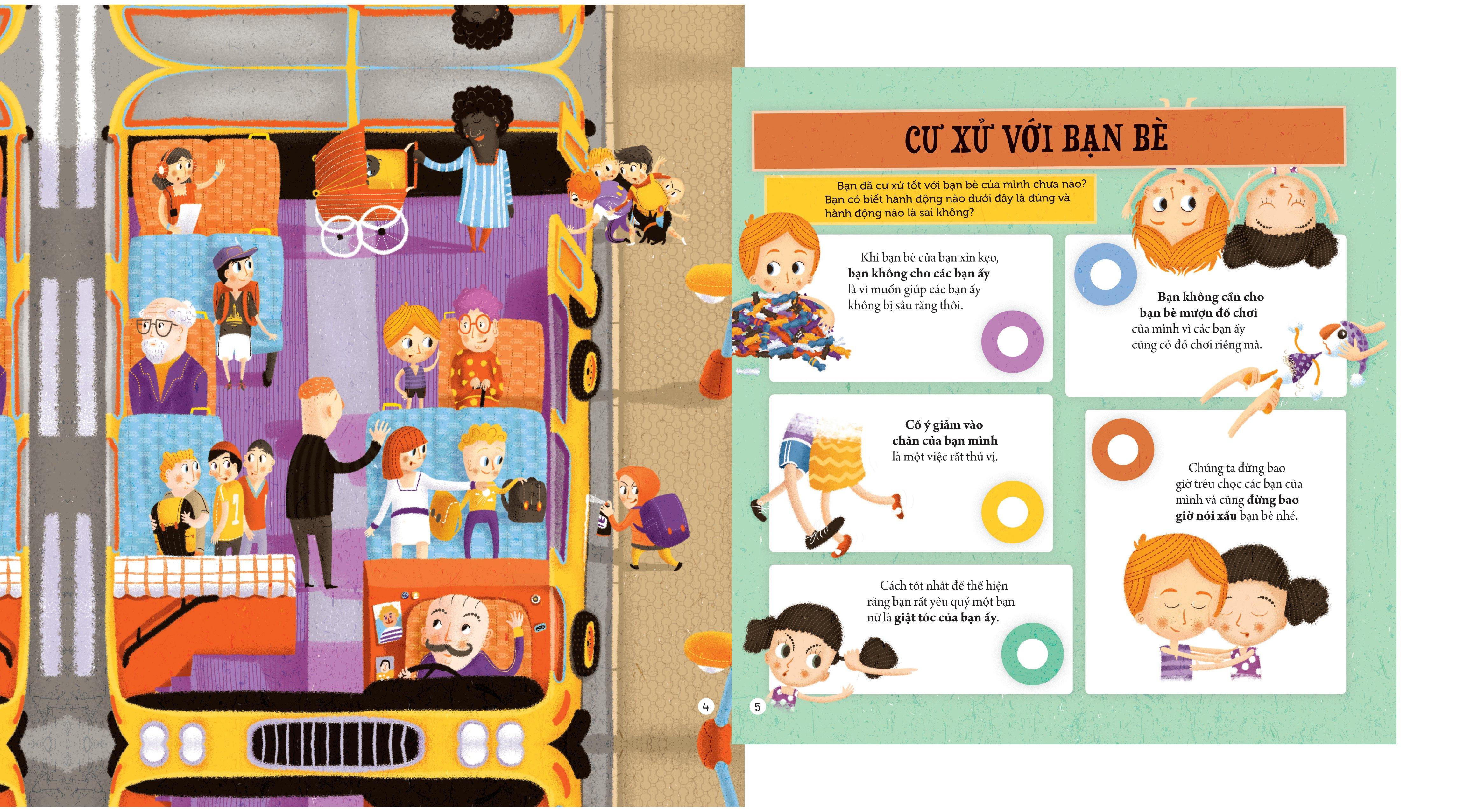 Sách được thiết kế dạng câu hỏi trắc nghiệm. Cha mẹ hướng dẫn trẻ đọc các câu hỏi, sau đó trẻ sẽ tư duy tìm kiếm đáp án, sau đó kéo thanh kéo trong sách để tìm đáp án chính xác. Qua việc trả lời Đúng hoặc Sai, cha mẹ dễ dàng hướng dẫn thêm cho trẻ về các tình huống thực tế tương tự tình huống trong sách, giúp trẻ có nhiều thông tin để ứng dụng tốt hơn trong cuộc sống.