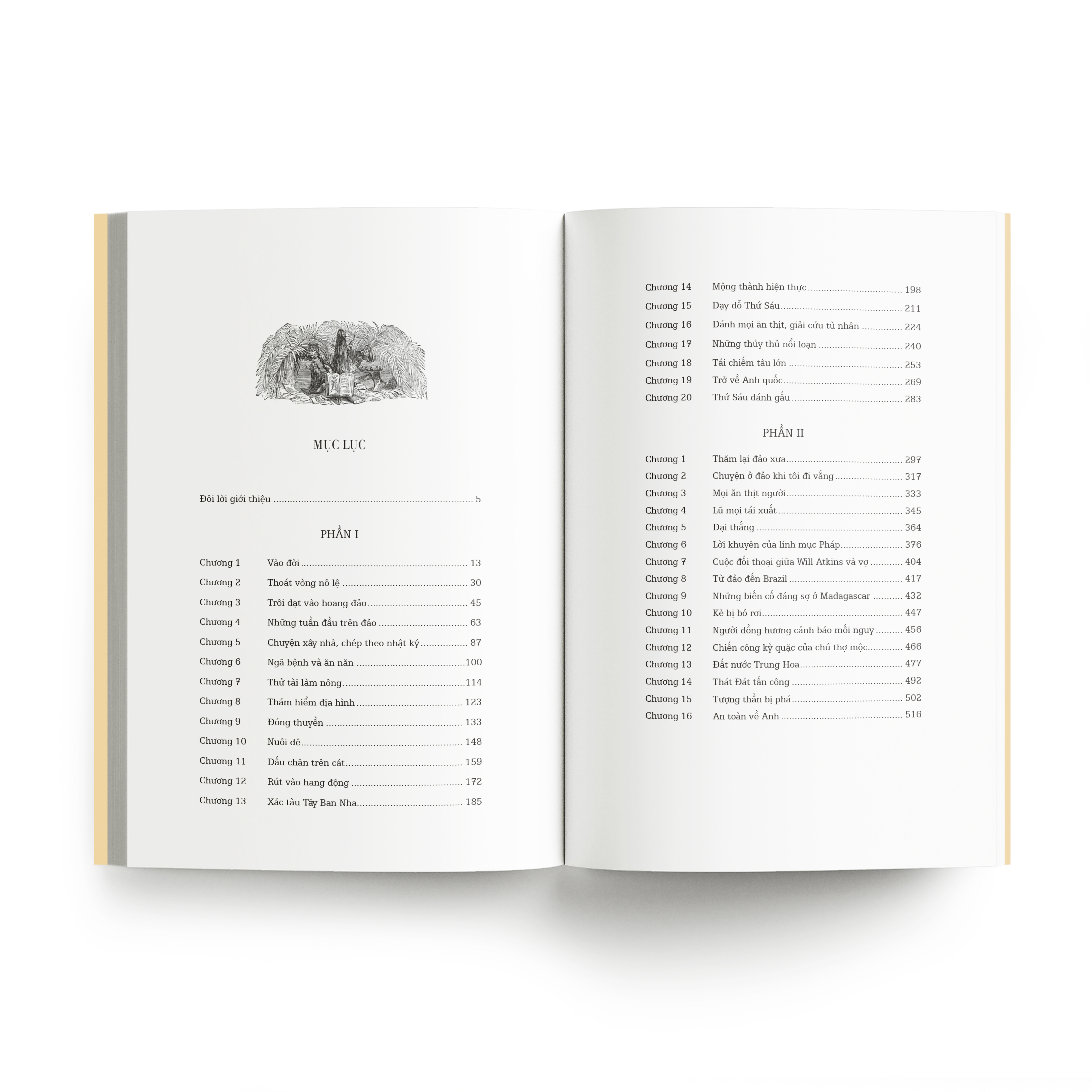 Trong lần xuất bản này, để trọn vẹn hơn các cuộc phiêu lưu hấp dẫn của Robinson, bên cạnh phần I “Trôi dạt nơi hoang đảo” đã quen thuộc, Đông A còn giới thiệu phần II “Kể lại chuyện kỳ thú trong các chuyến du hành qua ba phần” chưa từng được dịch và xuất bản tại Việt Nam. Mong rằng, “bảy mươi hai năm phiêu lưu, nếm trải cuộc sống muôn màu” của Robinson sẽ một lần nữa thôi thúc niềm khát khao dấn bước của bạn đọc trên những nẻo đường của riêng mình.