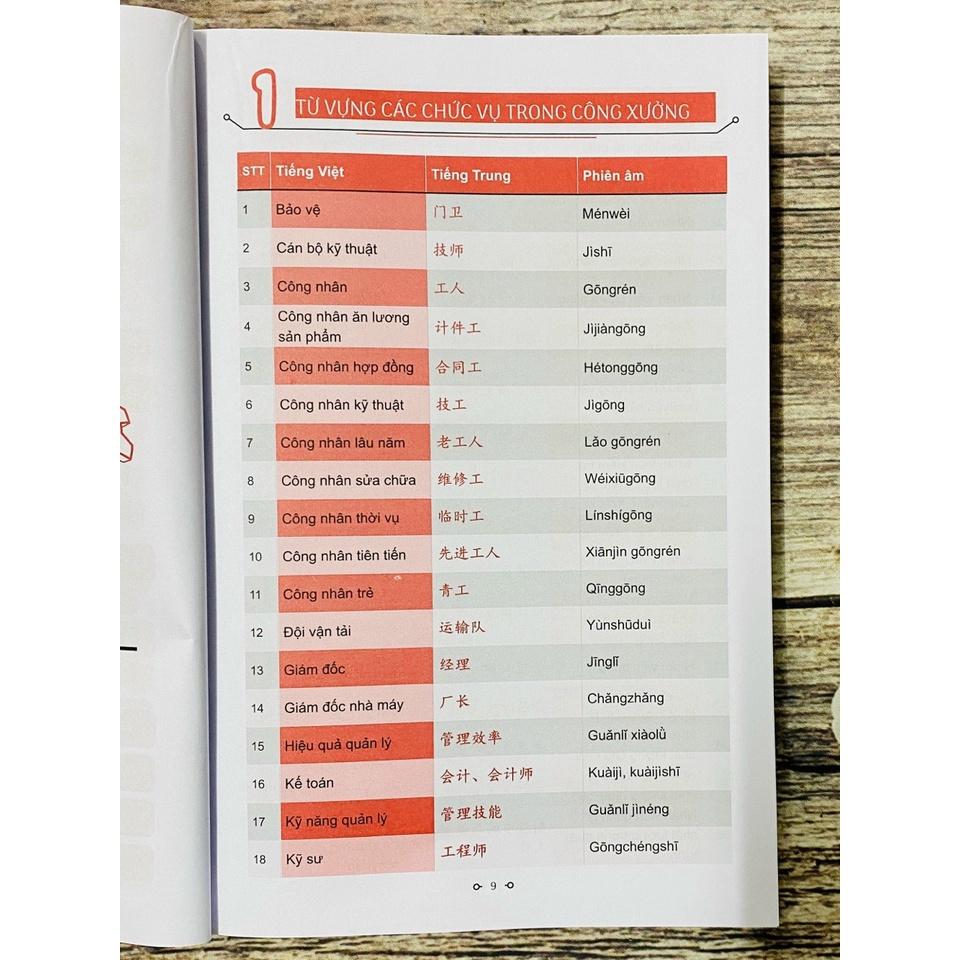 Sách gần 400 từ điển là tổng hợp các từ vựng thuộc 26 chủ đề công xưởng khác nhau,đảm bảo cung cấp một lượng phong phú những từ ngữ tiếng trung chuyên ngành cần thiết phục vụ cho quá trình học tập,làm việc của người đọc