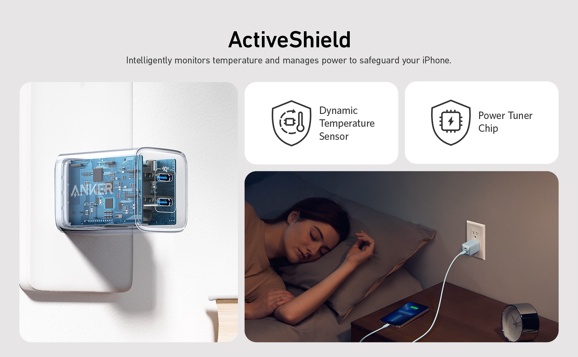 Với 2 cổng và công suất 40W, Bộ sạc Anker 521 (Nano Pro) lý tưởng để sạc iPhone mới, iPad, AirPods và MacBook Air của bạn.