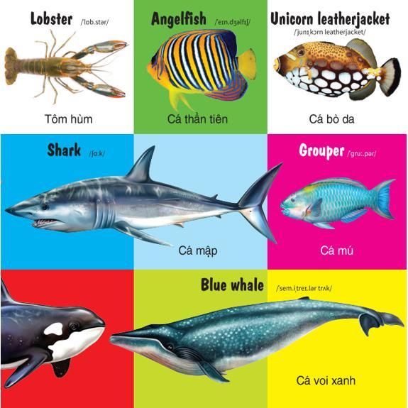 Điểm cộng của bộ sách này còn là yếu tố song ngữ Anh - Việt hấp dẫn, giới thiệu những từ vựng, hình ảnh, kiến thức cơ bản, gần gũi đầu tiên dành cho bé.