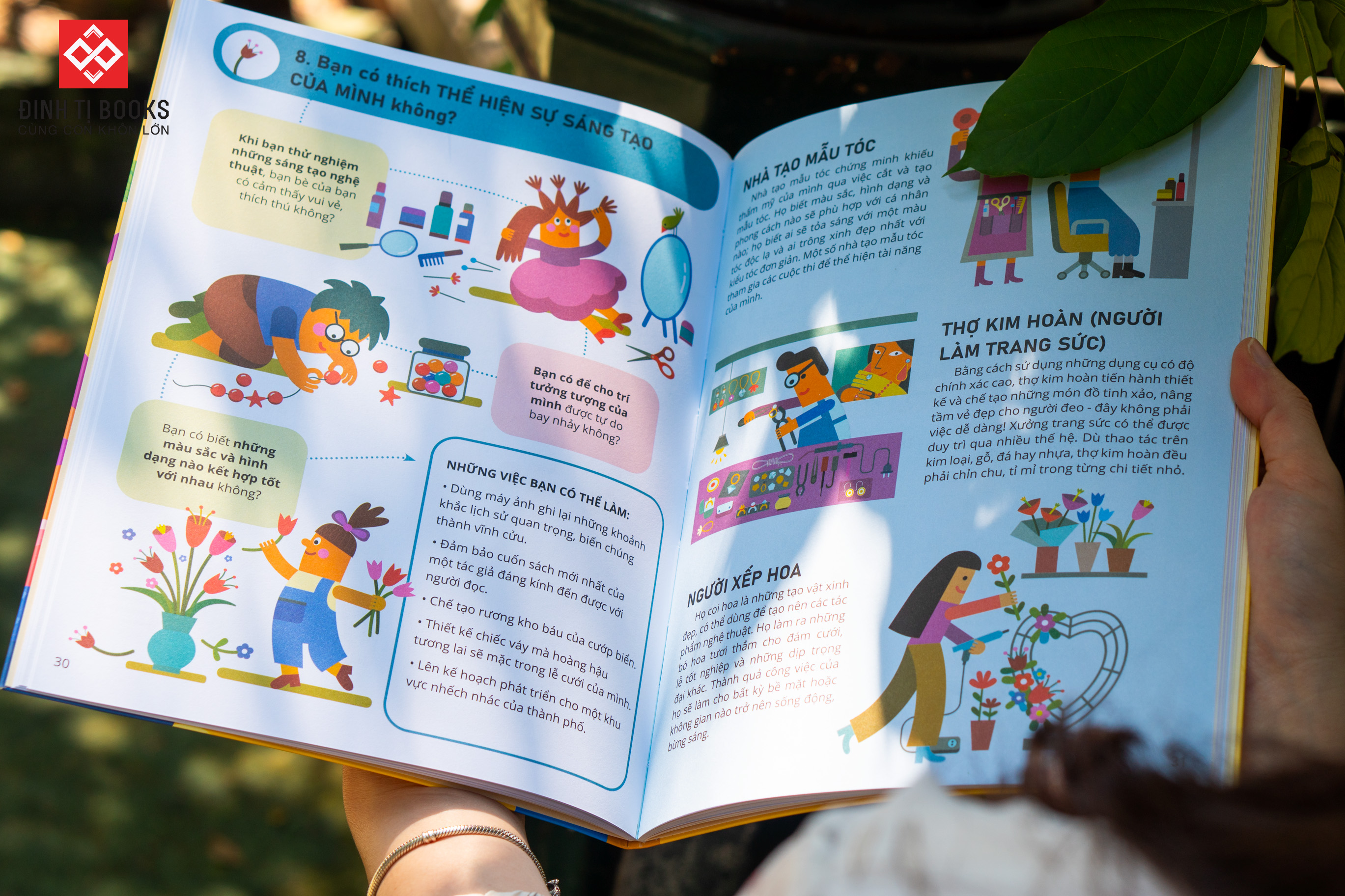 Cuốn sách này sẽ cung cấp những gợi ý về công việc phù hợp dựa trên sở thích và mong muốn của bản thân. Đồng thời đưa ra những mô tả tương đối chi tiết về công việc đó như bạn sẽ làm gì, cần kỹ năng gì để làm nó… Các bạn nhỏ sẽ rất dễ để hình dung và có nền tảng cơ bản về nghề nghiệp đó.