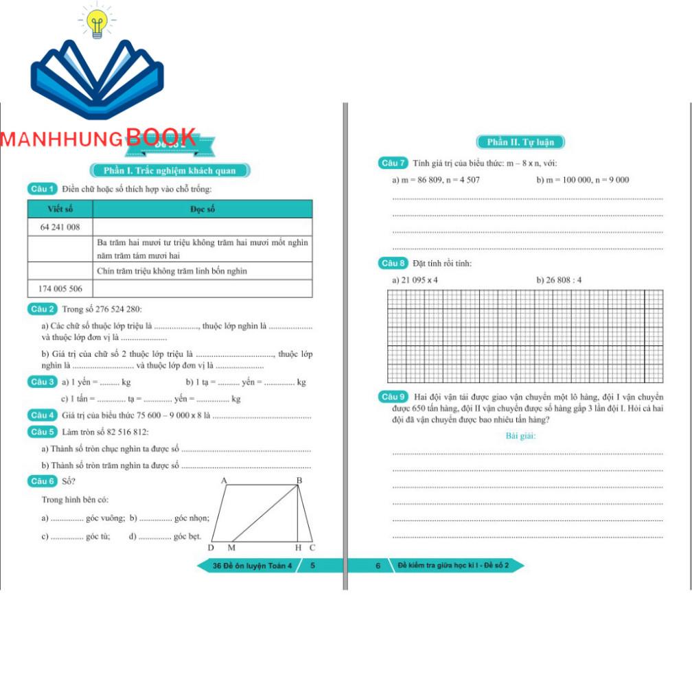 ✨Sách - 36 Đề Ôn Luyện Toán 4 - Biên soạn theo chương trình GDPT mới.