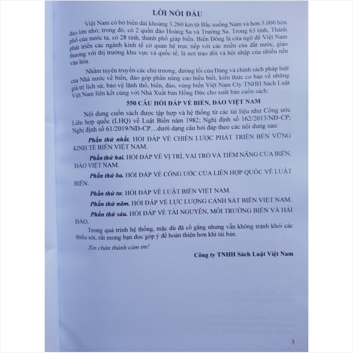 Nhằm tuyên truyền các chủ trương, đường lối của Đảng và chính sách pháp luật của Nhà nước về biển, đảo góp phần nâng cao hiểu biết, kiến thức cơ bản về những giá trị lịch sử, bảo vệ lãnh thổ, biển, đảo, vùng biển Việt Nam. Nhà sách Nam Việt xin trân trọng giới thiệu cuốn sách: 550 Câu Hỏi Đáp Về Biển Đảo Việt Nam