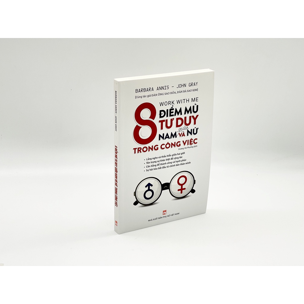 WORK WITH ME - 8 Điểm Mù Tư duy giữa nam và nữ trong công việc đưa ra những cuộc khảo sát với dữ liệu khổng lồ mà chưa có một nghiên cứu hay báo cáo nào có thể sánh kịp với 100.000 cuộc phỏng vấn sâu về các giám đốc điều hành cả giới nam và nữ trong hơn 60 công ty Fortune 500, mục đích là để xem xét thái độ làm việc của nam và nữ trong công việc. Dựa trên những số liệu đã thống kê, Gray và Annis đã đưa ra 8 điểm mù về Giới. Hành trình khám phá 8 điểm mù về Giới là hành trình trả lời những câu hỏi được đặt ra ở tựa đề mỗi chương như: Đàn ông có xem trọng phụ nữ? Đàn ông có thực sự vô cảm? Đàn ông có thực sự lắng nghe? Phụ nữ có quá dễ xúc động? Phụ nữ có mong muốn đàn ông thay đổi? Đàn ông có cần coi phụ nữ như “trứng mỏng”? Những câu hỏi này sẽ tiết lộ những điểm mù về Giới và qua đó chia sẻ những cách thức để nam và nữ làm việc với nhau hiệu quả.