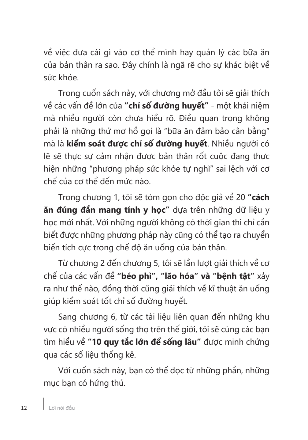 Sách hướng dẫn độc giả thực hiện chế độ ăn phù hợp để kiểm soát lượng đường, từ đó tránh được các bệnh lý phát hiện do không kiểm soát được lượng đường hấp thụ vào cơ thể.