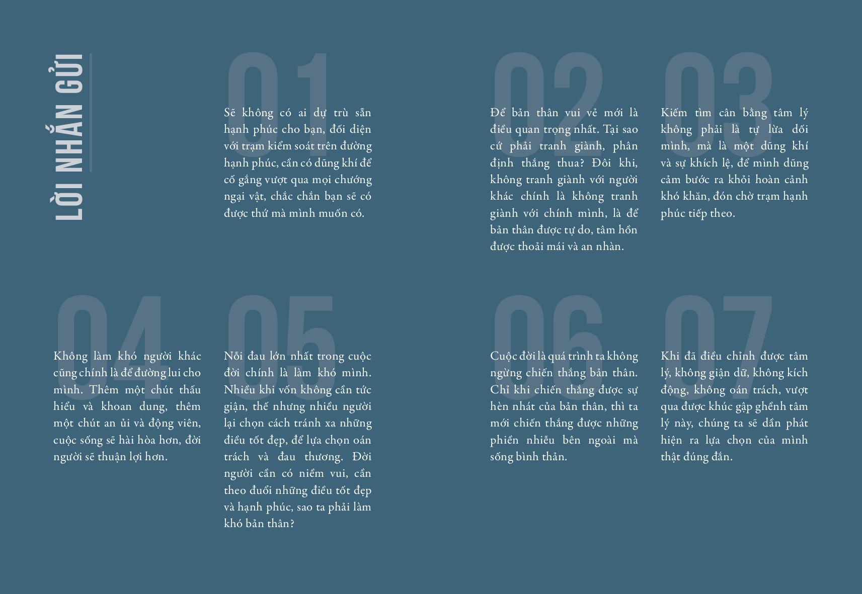 Với góc nhìn đầy thấu đáo, tác giả Hoa Dương soi lăng kính qua từng vấn đề, từng sự việc, giúp bạn nhận ra việc cân bằng cảm xúc có mối tương quan trực tiếp tới từng thời khắc của cuộc đời mỗi người. Thay vì tức giận, nếu bạn lựa chọn một tâm thế, một góc nhìn lạc quan hơn, thì tất cả những khó chịu sẽ trở nên nhỏ nhặt. Chỉ cần bạn dũng cảm, lựa chọn đi theo mặt trời, cuộc đời tự nhiên sẽ tràn ngập ánh nắng và niềm vui