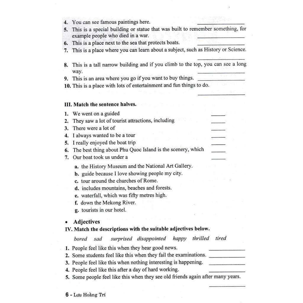 Bài tập dành cho mỗi đơn vị bài học gồm các phần sau: Vocabulary, Grammar, Word skills, Reading, Pronunciation, Speaking, và Writing. Các bài Review (Vocabulary, Grammar, Word skills, Use of English, và Reading) sẽ giúp học sinh tự kiểm tra những nội dung kiến thức và rèn luyện các kĩ năng sau mỗi đơn vị bài học.
