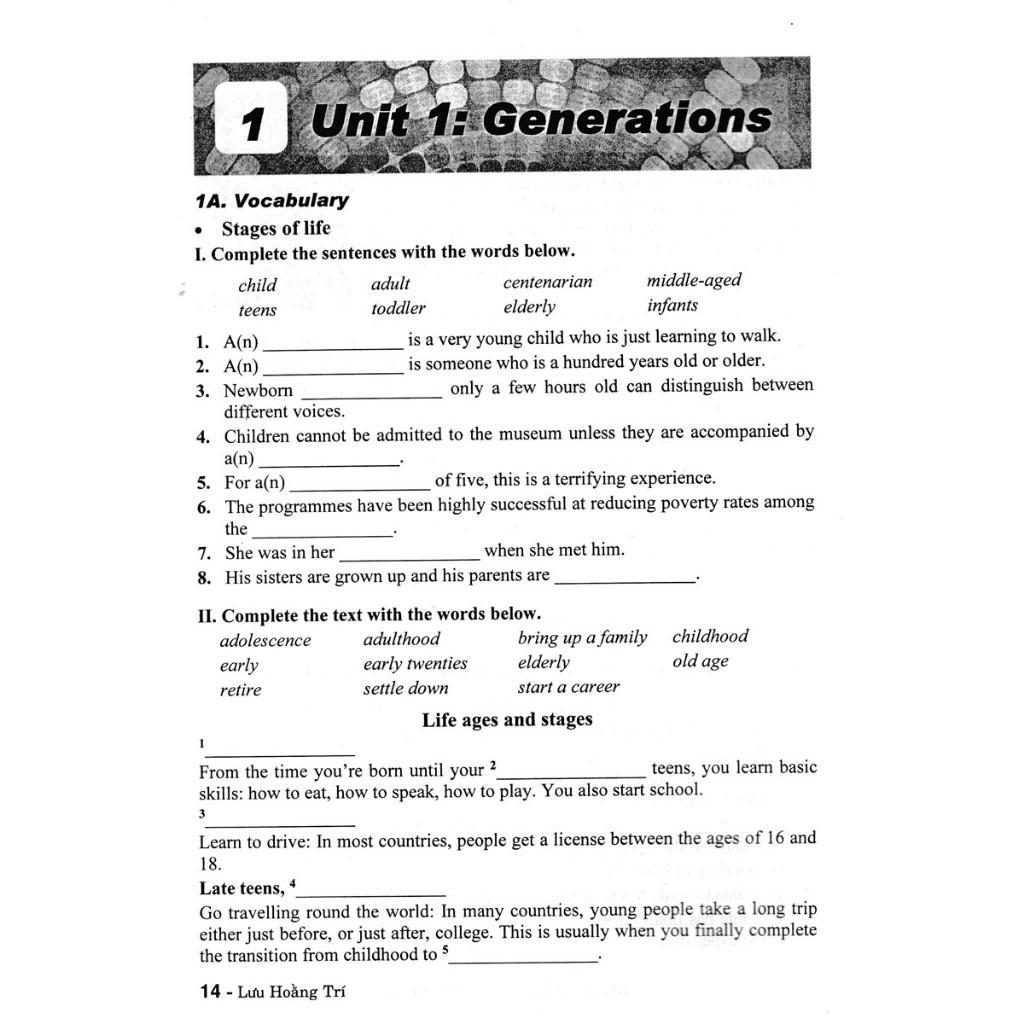 Bài tập Tiếng Anh 11 – Không đáp án gồm một bài ôn tập củng cố kiến thức đã học (Introduction), và 8 đơn vị bài học chính: Generations, Leisure time, Sustainable health, Home, Technology, High flyers, Artists, Cities. Sau mỗi đơn vị bài học đều có bài ôn tập Review.