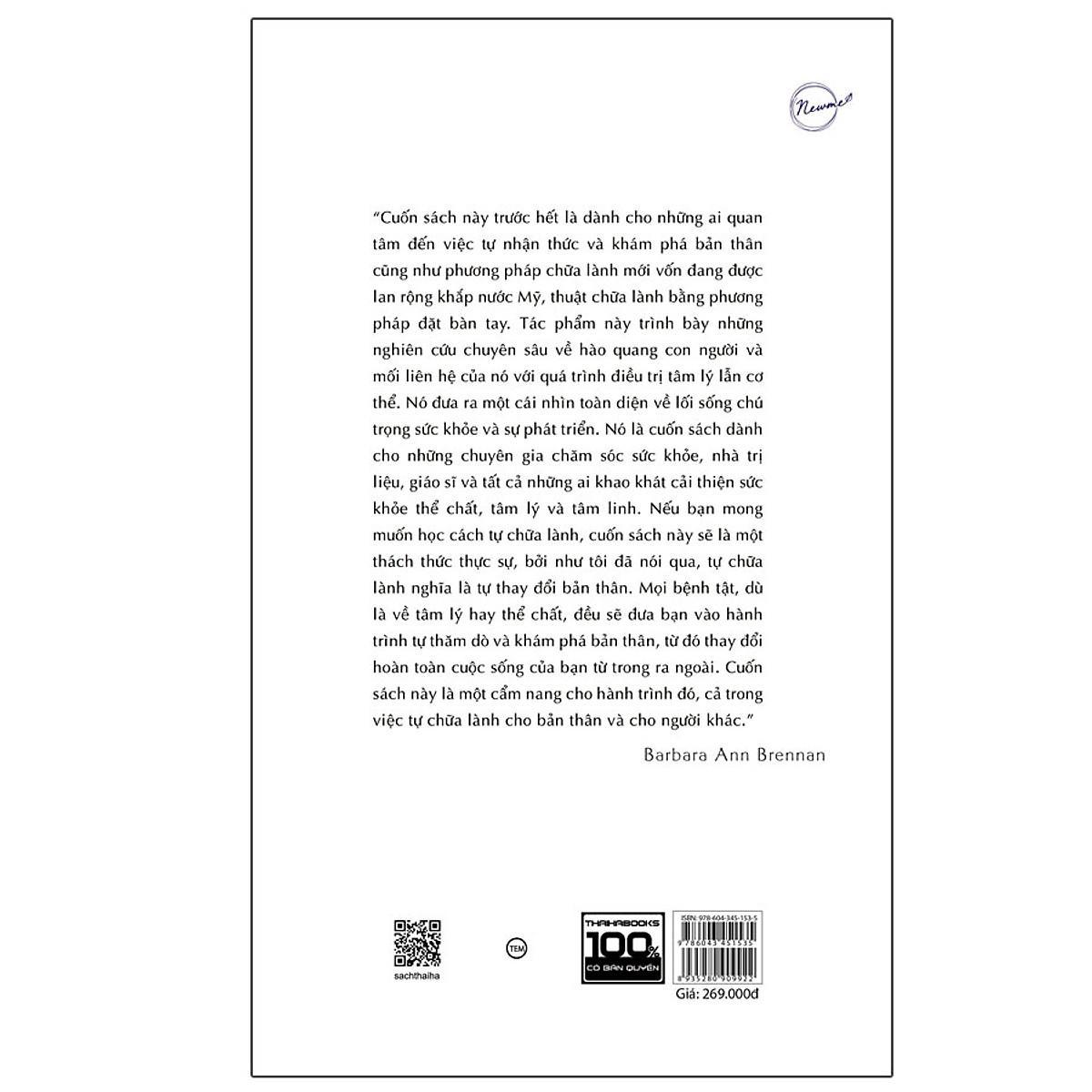 [ThaiHaBooks] Cuốn sách “Bàn tay ánh sáng” của tác giả Barbara Ann Brennan dành cho những ai quan tâm đến việc tự nhận thức và khám phá bản thân cũng như phương pháp chữa lành mới vốn đang được lan rộng khắp nước Mỹ, thuật chữa lành bằng phương pháp đặt bàn tay. Tác phẩm này trình bày những nghiên cứu chuyên sâu về hào quang con người và mối liên hệ của nó với quá trình tâm lý lẫn cơ thể. Nó đưa ra một cái nhìn toàn diện về lối sống chú trọng sức khỏe và sự phát triển. Nó là cuốn sách dành cho những chuyên gia chăm sóc sức khỏe, nhà trị liệu, giáo sĩ và tất cả những ai khao khát cải thiện sức khỏe thể chất, tâm lý và tâm linh. Nếu bạn mong muốn học cách tự chữa lành, cuốn sách này sẽ là một thách thức thực sự, bởi như tôi đã nói qua, tự chữa lành nghĩa là tự thay đổi bản thân. Mọi bệnh tật, dù là về tâm lý hay thể chất, đều sẽ đưa bạn vào hành trình tự thăm dò và khám phá bản thân, từ đó thay đổi hoàn toàn cuộc sống của bạn từ trong ra ngoài. Cuốn sách này là một cẩm nang cho hành trình đó, cả trong việc tự chữa lành cho bản thân và cho người khác.