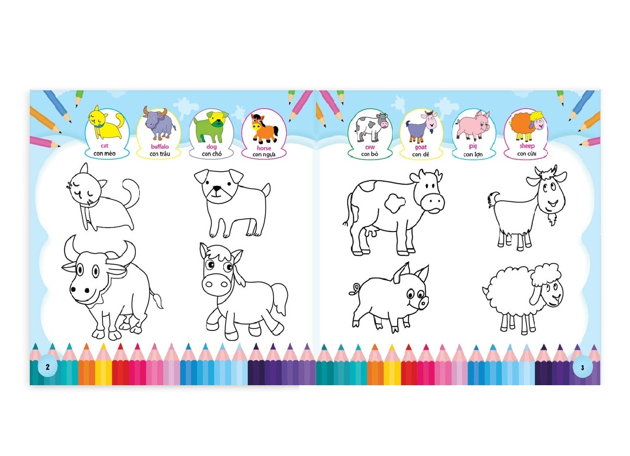 - Cuốn sách tô màu với nhiều hình vẽ chủ đề khác nhau, gần gũi với cuộc sống xung quanh bé. Bé có thể thỏa sức phối màu sắc tạo những bức tranh sinh động