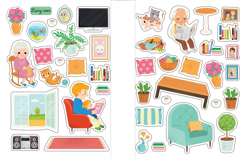 Cuốn sách "My First Stickers: At Home" (Những con dán đầu tiên của tôi: Ở nhà) là một cuốn sách dán hình dành cho trẻ em được thiết kế nhằm kích thích sự tương tác và sáng tạo của trẻ, Những cuốn sách này thường có hình ảnh màu sắc tươi sáng và cung cấp một loạt các con dán mà trẻ có thể sử dụng để trang trí các cảnh khác nhau hoặc hoàn thành các nhiệm vụ cụ thể,