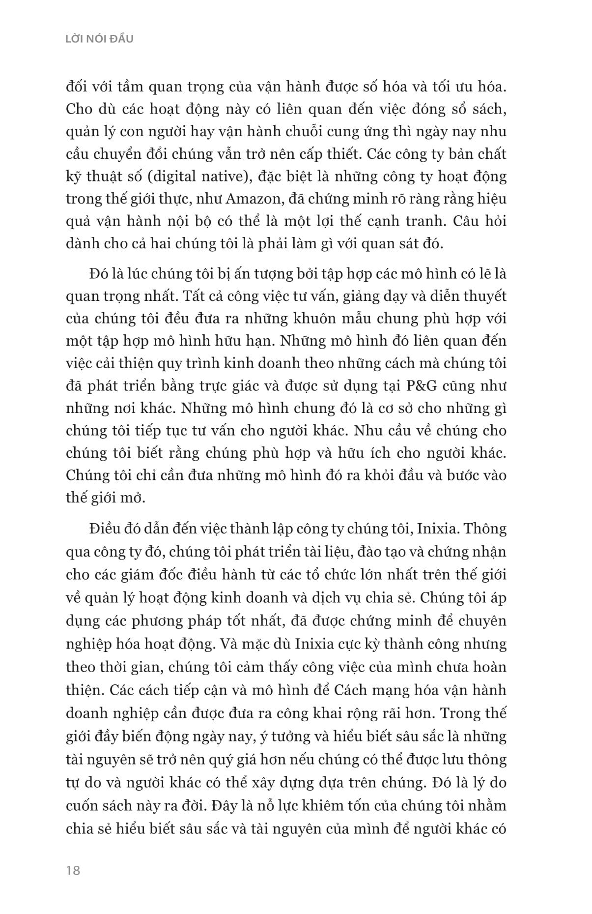 Với những kiến thức, kinh nghiệm và trải nghiệm từ hai chuyên gia uy tín Tony và Filippo, Cách mạng hóa vận hành doanh nghiệp chắc hẳn là một nguồn tài liệu quý báu dành cho những nhà quản lý và lãnh đạo doanh nghiệp đang hướng đến mục tiêu thay đổi để thích ứng, cải tổ để cạnh tranh và vươn m.ình trong kỷ nguyên số hóa đầy biến động và thách thức.