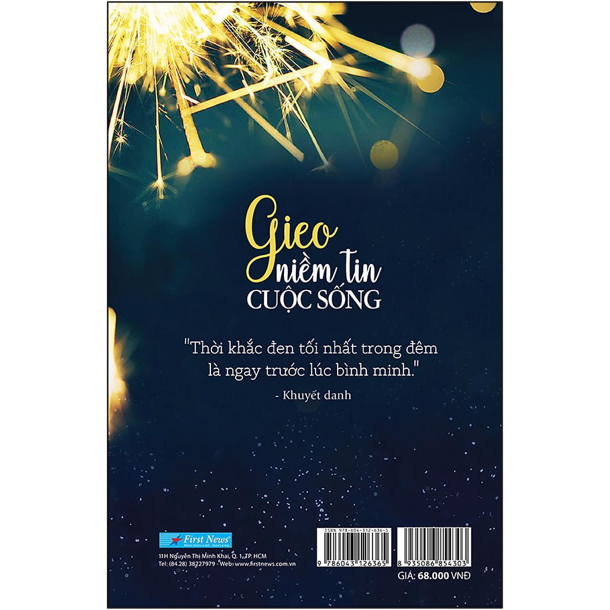 Gieo niềm tin cuộc sống là quyển sách tập hợp những câu chuyện ngắn cảm động chứa đựng ý nghĩa về sự chia sẻ, động viên, truyền cảm hứng và niềm tin cuộc sống. Với món quà bé nhỏ và giản dị này, mong rằng sẽ đồng cảm và chia sẻ với những ai đang gặp khó khăn bất hạnh cũng như hy vọng mang đến cho tất cả mọi người điểm tựa của tinh thần.