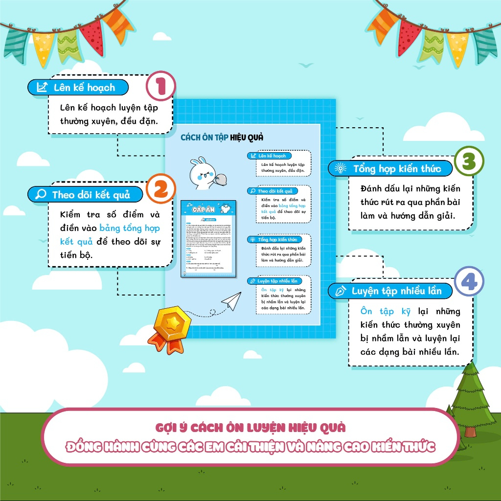 5. Bên cạnh đó, cuốn sách còn thiết kế lộ trình ôn tập hiệu quả với bảng kế hoạch, bảng theo dõi kết quả. Đây giống như kim chỉ nam, giúp con có động lực và tiến bộ từng ngày