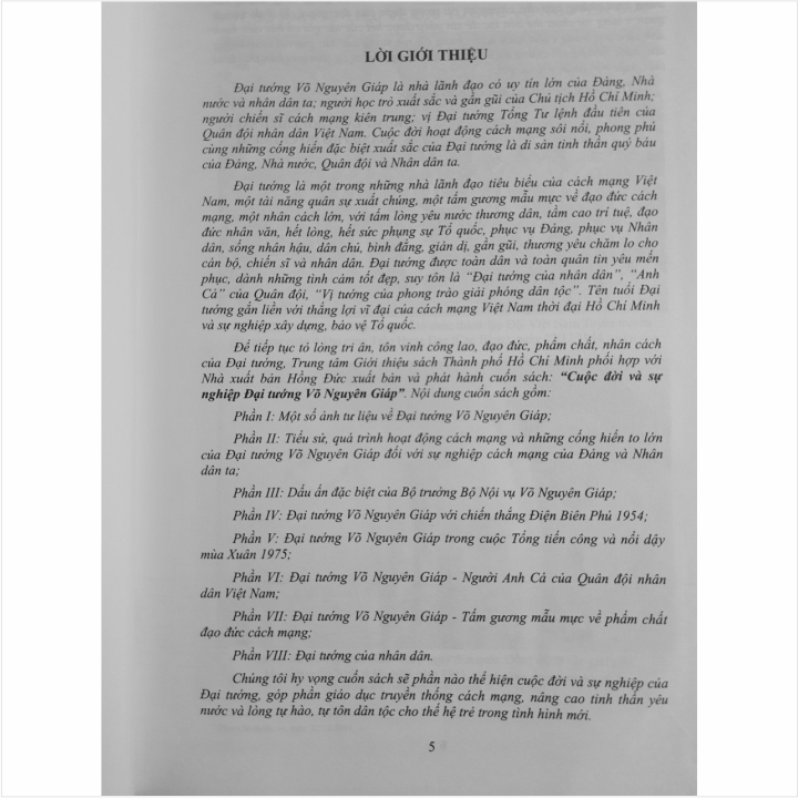 Chúng tôi hy vọng cuốn sách sẽ phần nào thể hiện cuộc đời và sự nghiệp của Đại tướng, góp phần giáo dục truyền thống cách mạng, nâng cao tinh thần yêu nước và lòng tự hào, tự tôn dân tộc cho thế hệ trẻ trong tình hình mới.