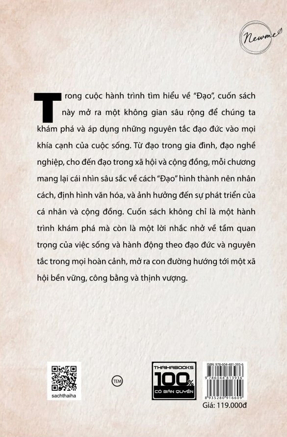 Cuốn sách này, thông qua việc khám phá và phản ánh về “Đạo”, không chỉ giúp chúng ta nhìn nhận lại giá trị truyền thống mà còn hướng dẫn cách thể hiện và duy trì những giá trị đó trong mọi khía cạnh của cuộc sống.