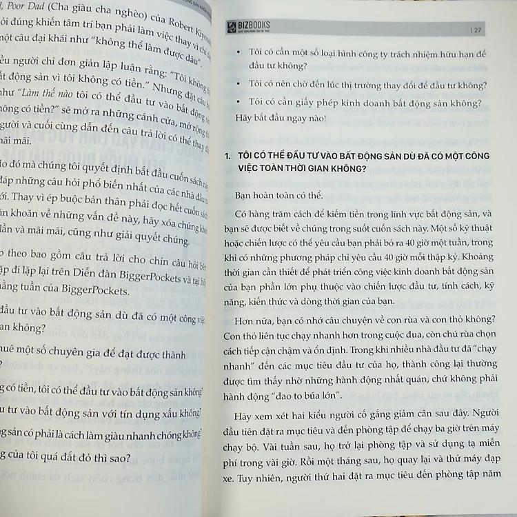 Xuyên suốt trong cuốn sách, bạn sẽ thấy hàng chục câu chuyện thực tế của các nhà đầu tư giống bạn, những người đang đạt được thành công thông qua các chiến lược bất động sản khác nhau. Những câu chuyện này không chỉ nhằm khuyến khích bạn trên hành trình của mình, mà còn cung cấp cho bạn vô số ý tưởng để lựa chọn khi bạn bắt tay vào hành trình đầu tư bất động sản. Hãy tiếp nhận những thông tin bạn muốn và bỏ qua những điều bạn thấy không phù hợp. Đó chính là điểm đặc biệt của bất động sản!