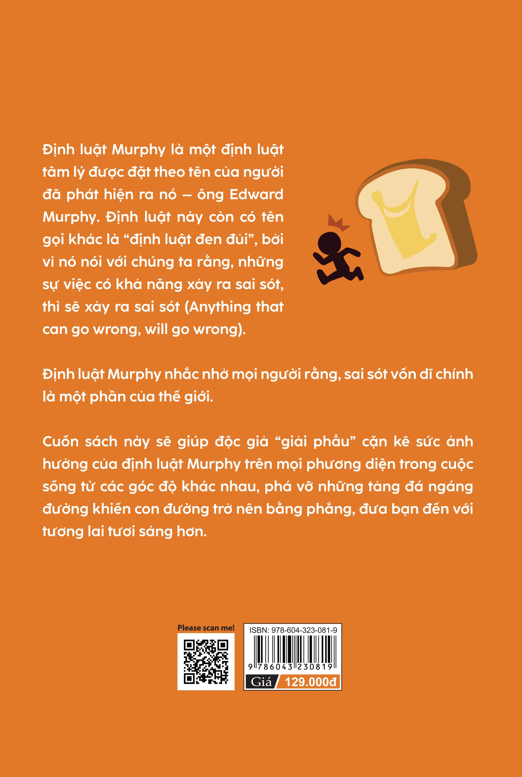 - TÓM TẮT NỘI DUNG: Định luật Murphy là một định luật tâm lý được đặt theo tên của Edward Murphy. Định luật này còn có tên gọi khác là “định luật của sự đen đủi”, bởi vì nó nói với chúng ta rằng, những sự việc có khả năng xảy ra sai sót, thì sẽ xảy ra sai sót (Anything that can go wrong, will go wrong). Câu nói này nhanh chóng được lan truyền khắp thế giới và được rất nhiều người công nhận là đúng. Vì thế, cùng với định luật Parkinson và nguyên lý Peter, định luật Murphy được coi là một trong ba phát minh vĩ đại nhất của thế kỷ XX. Định luật Murphy được bắt nguồn từ một cuộc thử nghiệm phóng tên lửa. Năm 1949, kỹ sư hàng không Edward Murphy tham gia một cuộc thử nghiệm phóng tên lửa. Một trong những hạng mục thử nghiệm là đem một bộ 16 chiếc máy gia tốc lắp đặt vào thiết bị thử nghiệm siêu nặng. Khi ấy, có hai phương án để cố định máy gia tốc lên giá đỡ, trong đó có một phương án sai và một phương án đúng. Một điều không thể ngờ tới là lại có người lắp sai hoàn toàn vị trí của 16 chiếc máy gia tốc này một cách đâu vào đấy, dẫn đến thử nghiệm thất bại. Thế là, Murphy đã lĩnh hội ra được một chân lý – “những sự việc có khả năng xảy ra sai sót, thì sẽ xảy ra sai sót”. Định luật Murphy đã không ngừng được chứng thực trong cuộc sống hằng ngày của mọi người, hơn nữa, cùng với thời gian, định luật này dần dần vượt ra khỏi giới hạn ban đầu, phát triển thành rất nhiều phiên bản khác nhau, tinh túy của nó không ngừng được mở rộng, cuối cùng trở nên vô cùng bao quát, phong phú: những sự việc không thể xảy ra sai sót, vẫn có thể sai sót; nếu định làm điều gì đó tốt hơn thì kết quả chỉ có thể là càng tồi tệ hơn; dự định chẳng làm gì cả, vậy thì những việc không thể xảy ra sai sót, sẽ sai sót… Nhiều lĩnh vực trong đời sống xã hội, có thể nói đã bị ít nhiều chi phối bởi định luật này. Định luật Murphy mặc dù trông có vẻ như một trò đùa, nhưng thực chất lại bao hàm chân lý thâm sâu, nó nhắc nhở mọi người rằng, trên đời này chẳng có gì là hoàn hảo cả, bất cứ sự việc gì cũng đều có khả năng xảy ra sai sót, sai sót vốn dĩ chính là một phần của thế giới. Rằng, khi làm gì chúng ta dù chắc chắn, vẫn có thể xảy ra sai sót mà đôi khi chúng ta không thể lường trước được. Vậy nên khi sai sót xảy ra, bạn đừng quán buồn và chán nản, hãy học cách rút ra những kinh nghiệm và bài học xương máu từ nó, để cuộc sống, công việc sẽ ngày càng trở nên tốt hơn và hoàn hảo hơn. Một người cho dù thông minh đến đâu, trí tuệ cỡ nào, tài hoa ra sao đều khó lòng tránh khỏi định luật Murphy. Sự thần kỳ của định luật Murphy nằm ở chỗ, mọi người mặc dù đều hiểu được đạo lý này, nhưng vẫn khó lòng thoát khỏi “bàn tay ma thuật” của nó. Để hiểu cặn kẽ được định luật này không phải điều dễ dàng, nhưng chúng ta không thể lựa chọn trốn tránh nó, bởi làm vậy kết quả chỉ tồi tệ hơn mà thôi. Điều duy nhất chúng ta có thể làm chính là cố gắng tìm hiểu nó một cách toàn diện, để khiến số lần bản thân mắc sai lầm ngày càng ít đi, và học cách đế đối diện với nó. Cuốn sách “Định luật Murphy – Làm sao để những việc bạn lo lắng sẽ không xảy ra” của tác giả Lý Thế Cường, sẽ giúp chúng ta “giải phẫu” cặn kẽ sức ảnh hưởng mạnh mẽ của định luật Murphy trên mọi phương diện trong đời sống – xã hội, từ các góc độ khác nhau, thông qua những ví dụ đơn giản, dễ hiểu, giúp mỗi độc giả lĩnh hội được tinh hoa của định luật này một cách nhẹ nhàng thoải mái nhất, từ đó giúp nâng cao tinh thần cảnh giác đối với các sai lầm, giúp phá vỡ những tảng đá ngáng đường khiến con đường trở nên bằng phẳng, đưa bạn đến với tương lai tươi sáng hơn.