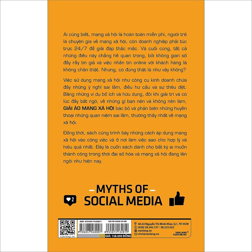Việc sử dụng mạng xã hội như công cụ kinh doanh chứa đầy những ý nghĩ sai lầm, điều hư cấu và sự thêu dệt. Bằng những ví dụ bổ ích và hữu dụng, đôi khi giải trí và có lúc đầy bất ngờ, về những gì bạn nên và không nên làm, GIẢI ẢO MẠNG XÃ HỘI bác bỏ và phản biện những huyền thoại những quan niệm sai lầm, thường thấy nhất về mạng xã hội.