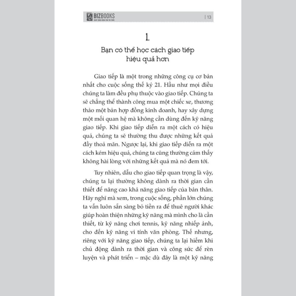 - Tập trung vào nhận thức chung Chìa khóa cho cuộc hội thoại hiệu quả là khám phá vùng chồng lên nhau – hay nói cách là nhận thức chung, nơi hai vòng tròn đạt được sự giao thoa . Vùng chồng lên nhau này rất nhỏ nhưng là nơi để bạn bắt đầu cuộc trò chuyện. Khi bắt đầu cuộc giao tiếp mà cả hai có những trải nghiệm và mối quan tâm chung, chúng ta sẽ có thể xây dựng một nền tẩng vững chắc cho việc khám phá những “giới hạn chưa biết” trong vòng tròn của đối phương. Nó giúp thay đổi góc nhìn từ “tôi” đến “bạn” rồi đến “chúng ta”. Cuốn sách Giao tiếp tự tin trong 1 phút sẽ giúp bạn nắm vững kỹ năng giao tiếp, mang đến cho bạn sự tự tin và là công cụ cần thiết để thành công trong các mối quan hệ cá nhân và các tình huống giao tiếp khác nhau. Đây là một cuốn sách vô cùng hữu ích và tuyệt vời giúp bạn tự tin giao tiếp ở mọi lĩnh vực, mọi tình huống chỉ trong thời gian ngắn, hãy sở hữu ngay cuốn sách và khám phá cách trở thành một người giao tiếp tự tin và thành công. Thông tin chi tiết cuốn Sách - Giao Tiếp Tự Tin Trong 1 Phút - MCBooks