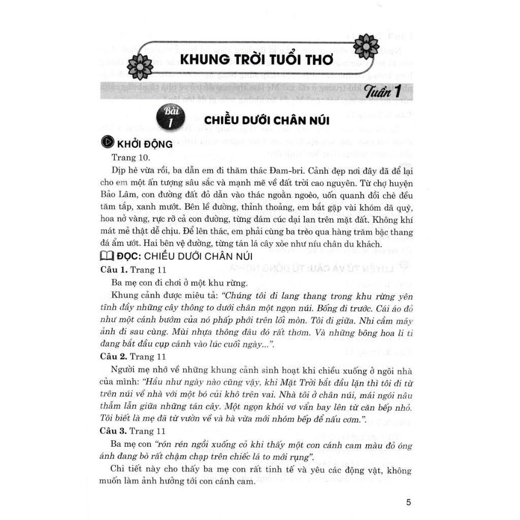 Bộ sách Hướng dẫn học và làm bài Tiếng Việt 5 – Tập 1 – (CHÂN TRỜI SÁNG TẠO) được biên soạn trên cơ sở chương trình giáo dục phổ thông mới của Bộ Giaso Dục và Đào tạo với những mục đích chính sau đây: