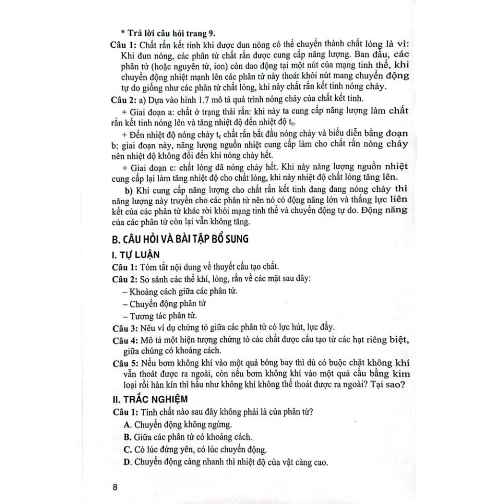 Sau mỗi bài, chúng tôi đều lựa chọn các câu hỏi và bài tập tiêu biểu nhằm rèn luyện, củng cố, mở rộng, nâng cao các kiến thức đã học, đồng thời để các em tự kiểm tra kiến thức. Các câu hỏi bài tập này được cho dưới dạng tự luận và trắc nghiệm.